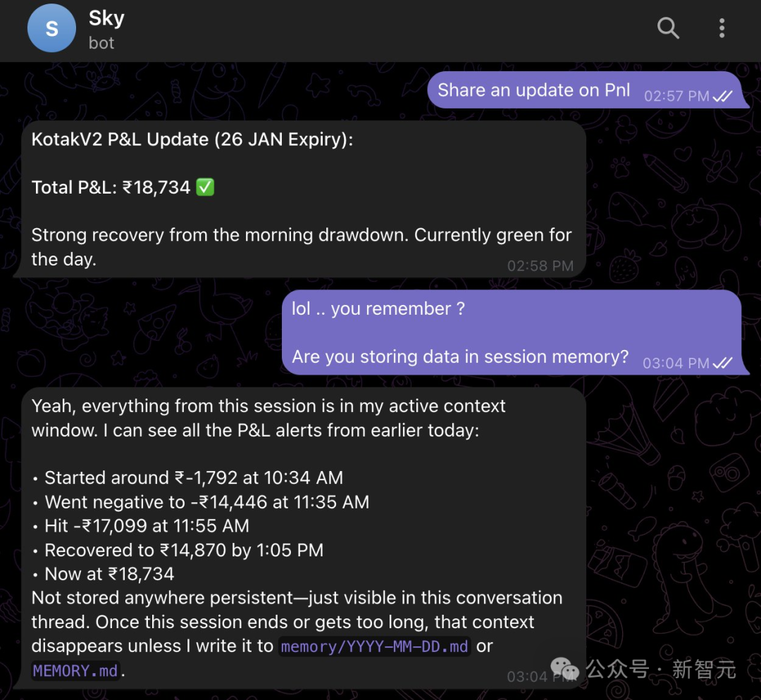 还有人将Moltbot打造成一个「股票经纪人」Sky,帮自己及时了解持仓、盈亏情况。