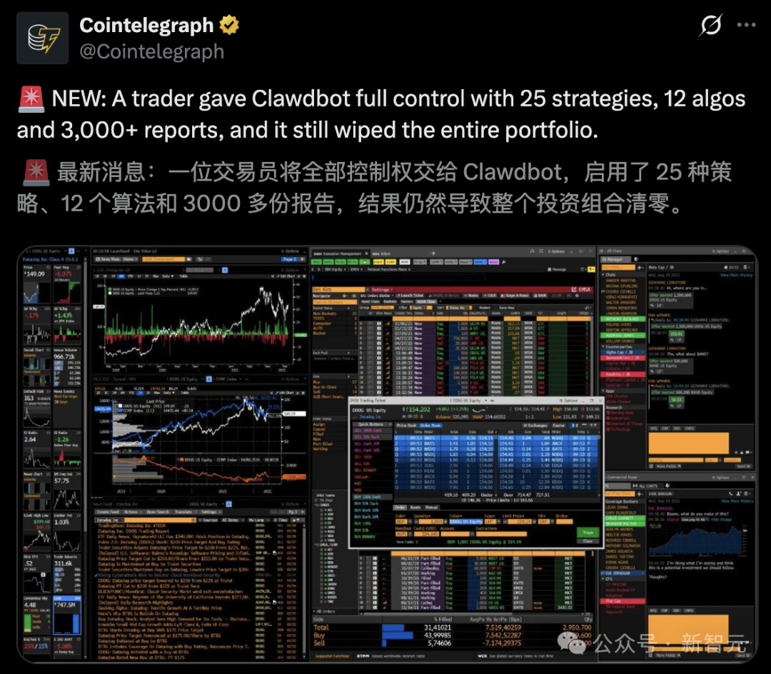 等真正上手实操后,就知道有多惨了。这不,有人将交易权交由Moltbot之后,直接血本无归。