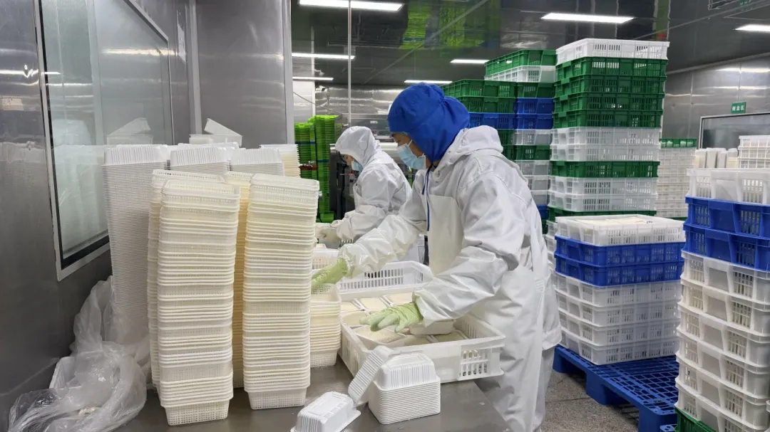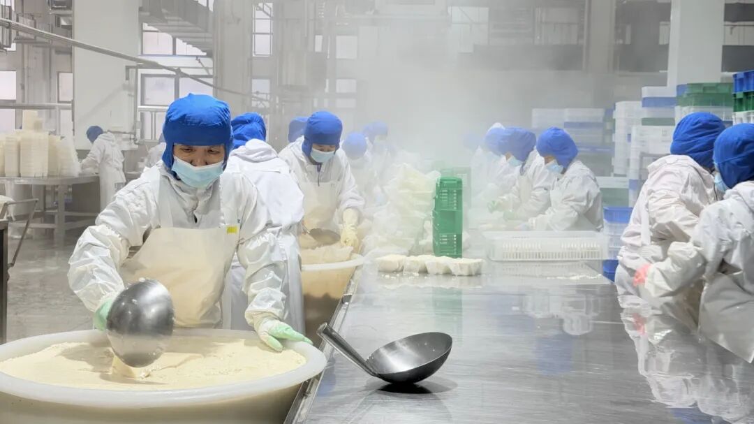 这份对传统的坚守,让山香豆腐的制作技艺于2025年12月成功入选台州市非物质文化遗产。在陈冬兴看来,申遗成功的关键在于“守根拓路”:“我们既完整保留了手工点卤、舀豆腐、自然沥水等核心技艺,又积极拥抱现代生产体系。”近年来,企业累计投入约6000万元,建成高标准净化车间,引入巴氏杀菌线与自动化包装流水线,在守护风味灵魂的同时,将豆腐保质期从5天延长至15天,为行销全国打下基础。
