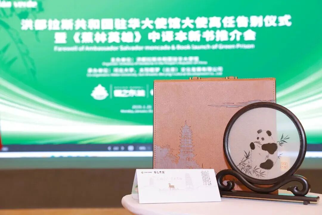 活动中,空港农发集团代表简阳,向洪都拉斯共和国驻华大使萨尔瓦多·蒙卡达阁下赠送了“金简银针”蜀绣非遗礼品。
