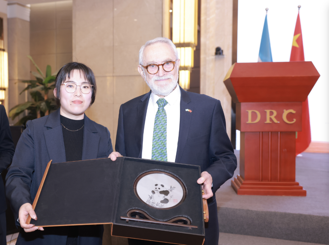 1月26日晚,北京亮马桥外交大楼宴会厅内,“洪都拉斯共和国驻华大使馆大使离任告别仪式暨《蕉林英雄》中译本新书推介会”顺利举行。简阳蜀绣作为非遗代表精彩亮相,成为本次外交文化交流中的一抹亮色。这不仅是“金简银针”妇字号品牌推动本土非遗文化走向国际的重要实践,更彰显了我市依托指尖技艺赋能居家妇女就业增收、联动村集体公司激活乡村发展动能的坚实成效。