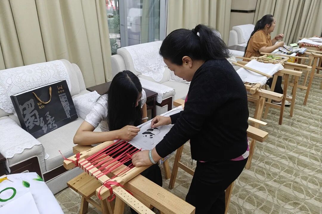 以促进妇女就业增收为核心,强化村集体公司联动赋能,推动“金简银针”品牌扎根乡村、辐射全域。通过整合村级闲置资源,联合引进优质企业,在乡镇、村社共建“社区工厂”“巧手工坊”,构建起覆盖广泛的居家妇女“30分钟就业圈”,让妇女足不出村社就能实现灵活就业;创新推行“订单驱动式”“大师领航式”培训模式,特邀省级蜀绣大师进驻工坊开展专题教学,系统传授蜀绣文化、核心针法与成品绣制技巧,持续提升妇女从业技能,目前已开发蜀绣、钩编等20余种特色文创产品,实现“培训+就业+增收”一体化推进。
