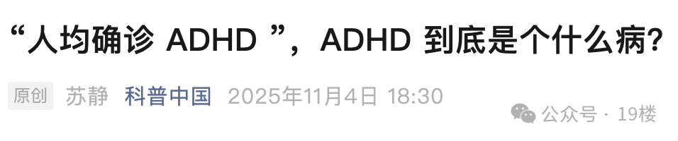 不久前,科普中国发布过一篇文章指出,最近,社交媒体上还掀起了一阵“人均 ADHD”的风潮,甚至还有更离谱的“赛博确诊”流传: