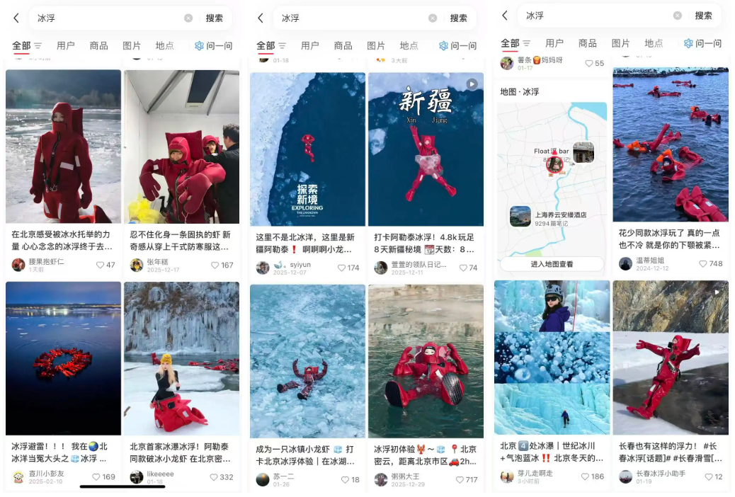 冰雪消费开始越来越多样化。2025年11月底,国内首家“冰浮”俱乐部落户新疆阿勒泰,内蒙古等地也开始引入。游客穿上被戏称为“小龙虾”的红色隔水防寒服,平躺在4℃的冰河中,顺流飘下,一边感受类似死海一样的漂浮体验,一边欣赏沿途的冬季景色。这个之前流行于俄罗斯、芬兰、冰岛的运动,正在成为今年冬季文旅的新热点。