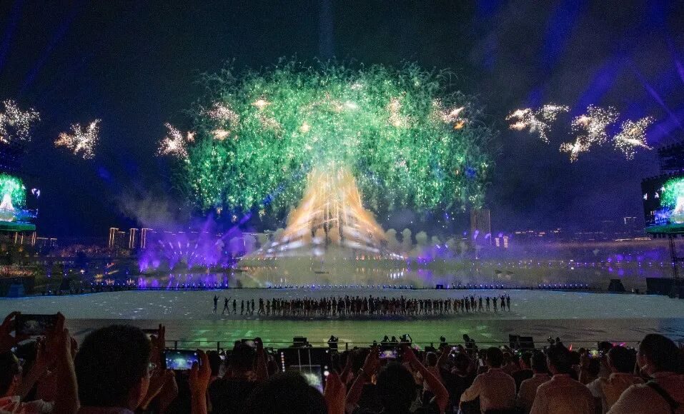2025年8月,第12届世界运动会在成都天府国际会议中心开幕。在世界注目下,世运会历史上第一支主火炬在湖中点燃,熊熊火焰从水中喷薄而出,“友谊之树”焰火冲天而起,彰显成都科技创新突破,富有创意的开幕式在海内外破圈传播。