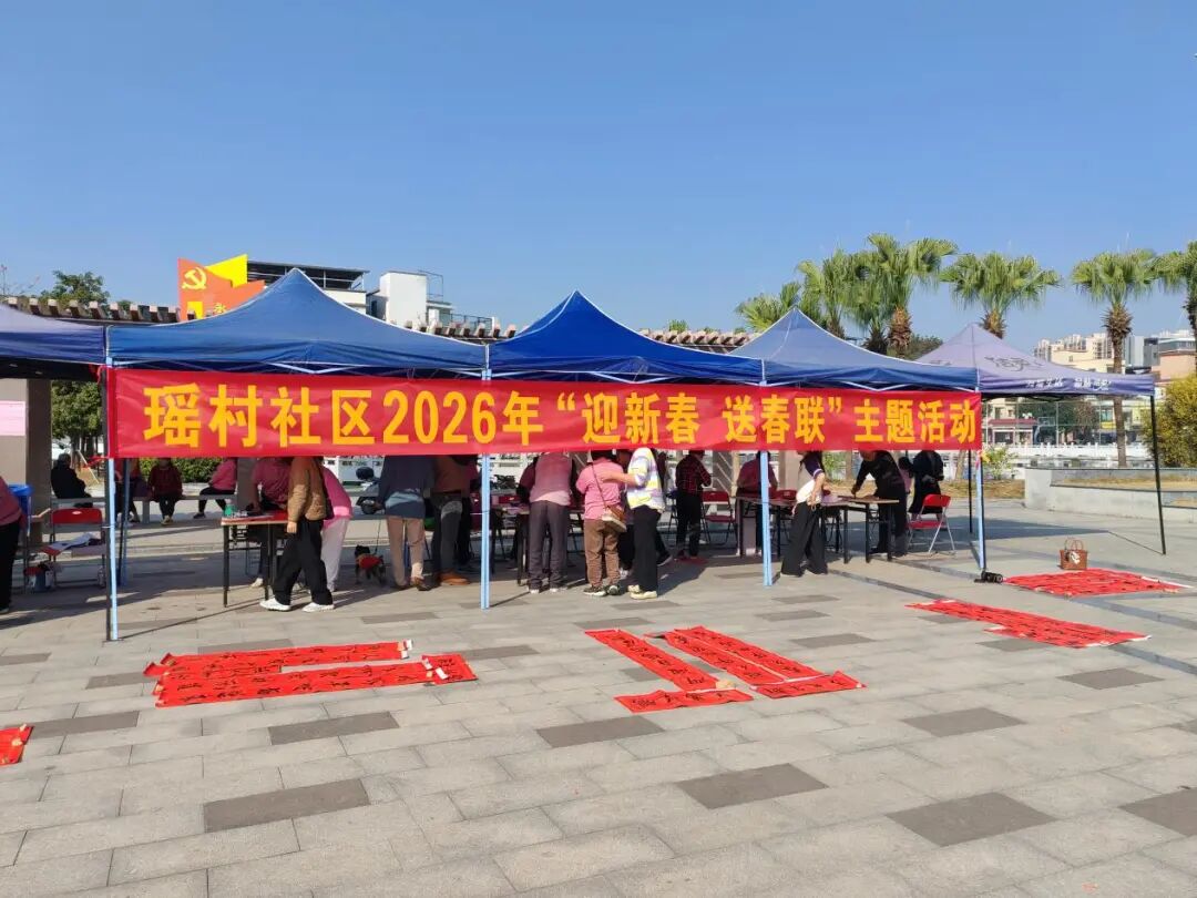↑瑶村社区新时代文明实践站在社区文化广场热热闹闹办起了“迎新春 送春联”活动↑