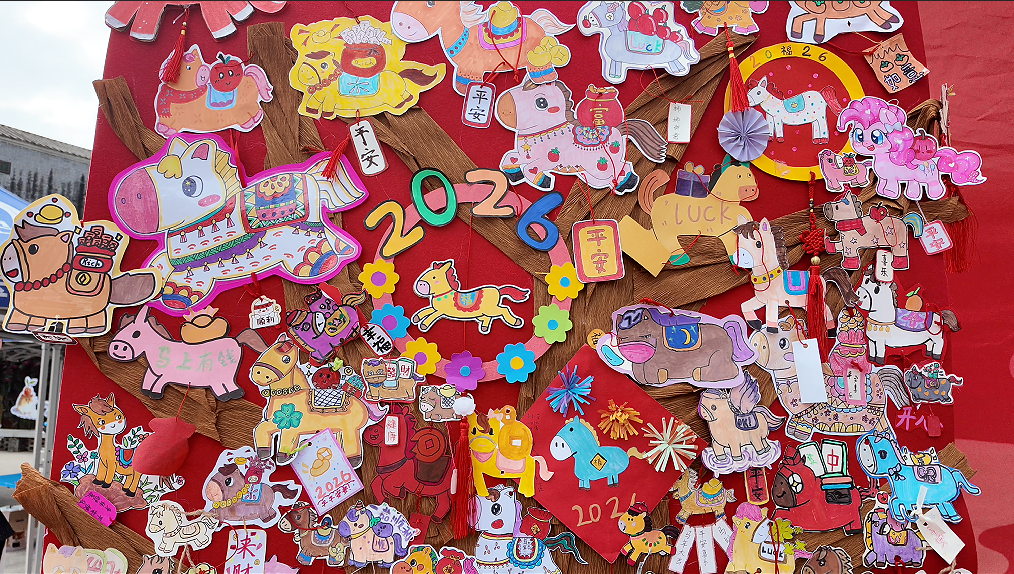 走进启明里广场,“赏年画 过大年”主题展览早已布置妥当,一幅幅色彩鲜亮、寓意吉祥的年画,瞬间拉满新春氛围。本次展览由范罗冈小学教育集团的师生,精心准备的原创贺年画和手工作品等,汇聚了传统剪纸、原创新作、新年寄语等百余幅精品,以“传统+新时代”双展区布局,让每一位参观者都驻脚拍照,在笔墨间读懂年味、看见发展。