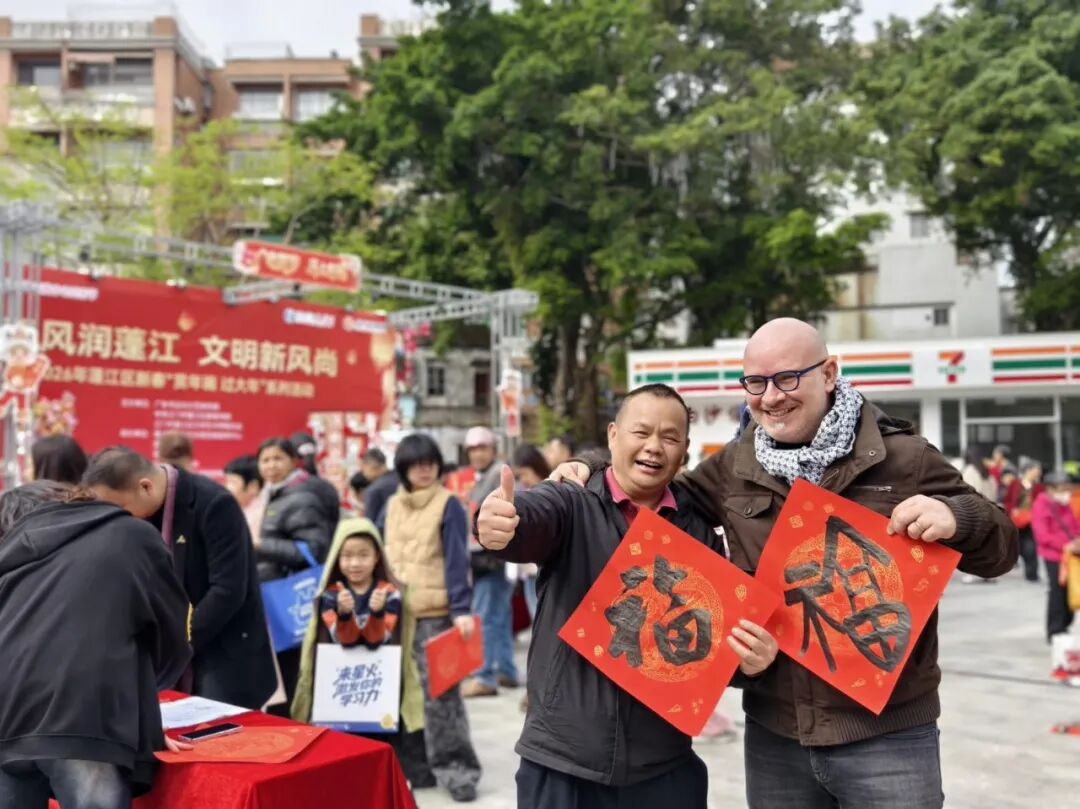 活动尾声的“挥春送福”环节暖意融融。工作人员将书法老师手写的春联福字,赠与现场市民。一张张红彤彤的年画、一副副墨香氤氲的对联、一个个寓意吉祥的福字,不仅传递着浓浓的新春祝福,更让非遗文化、文明理念以可触摸、可带走的形式,走进千家万户。