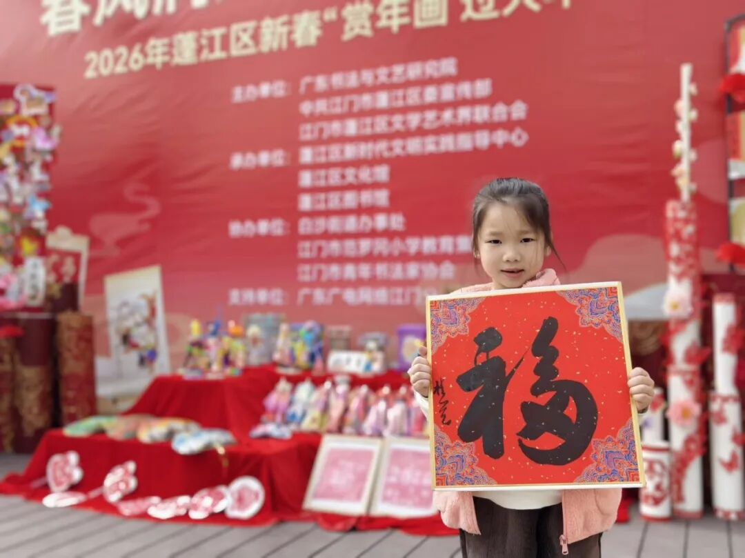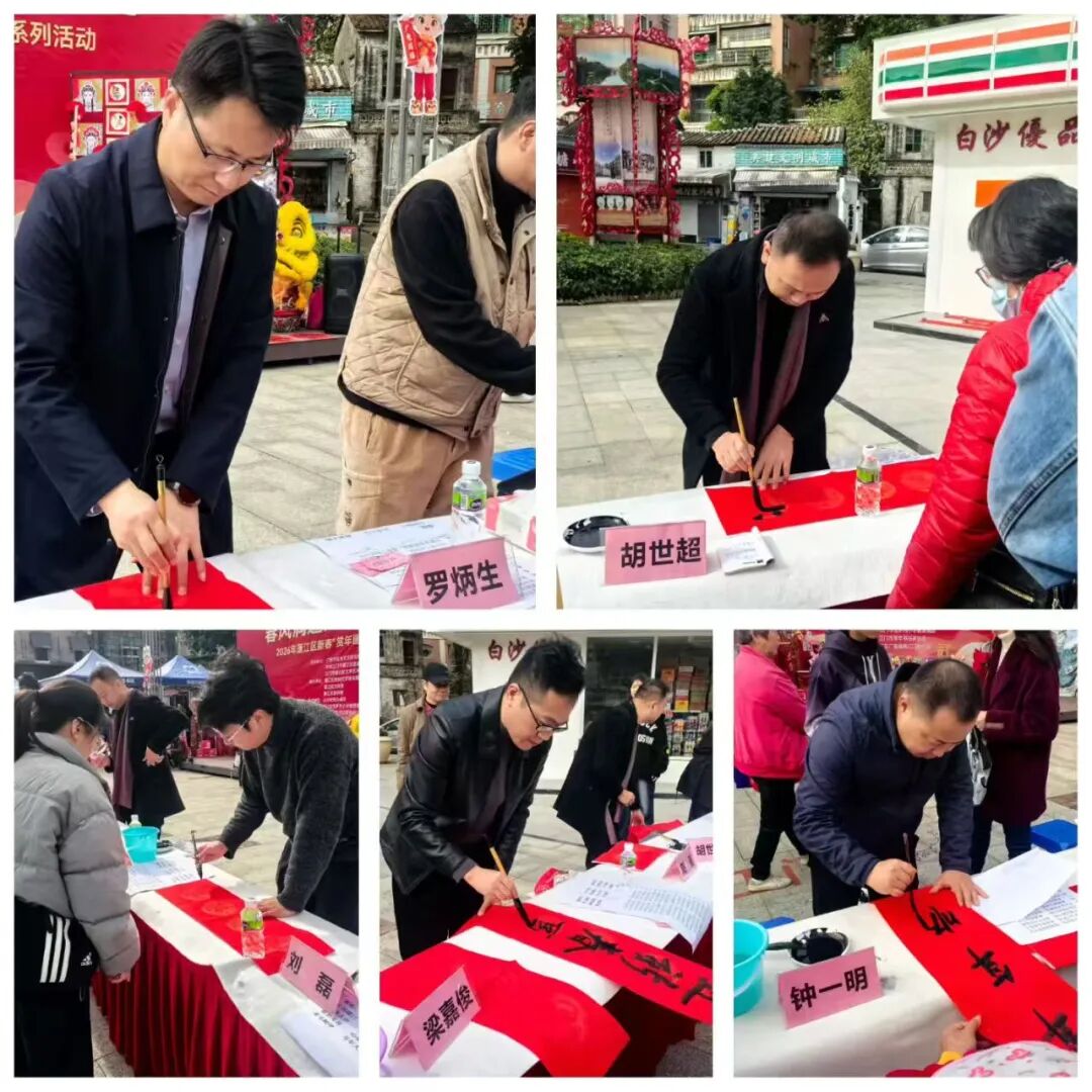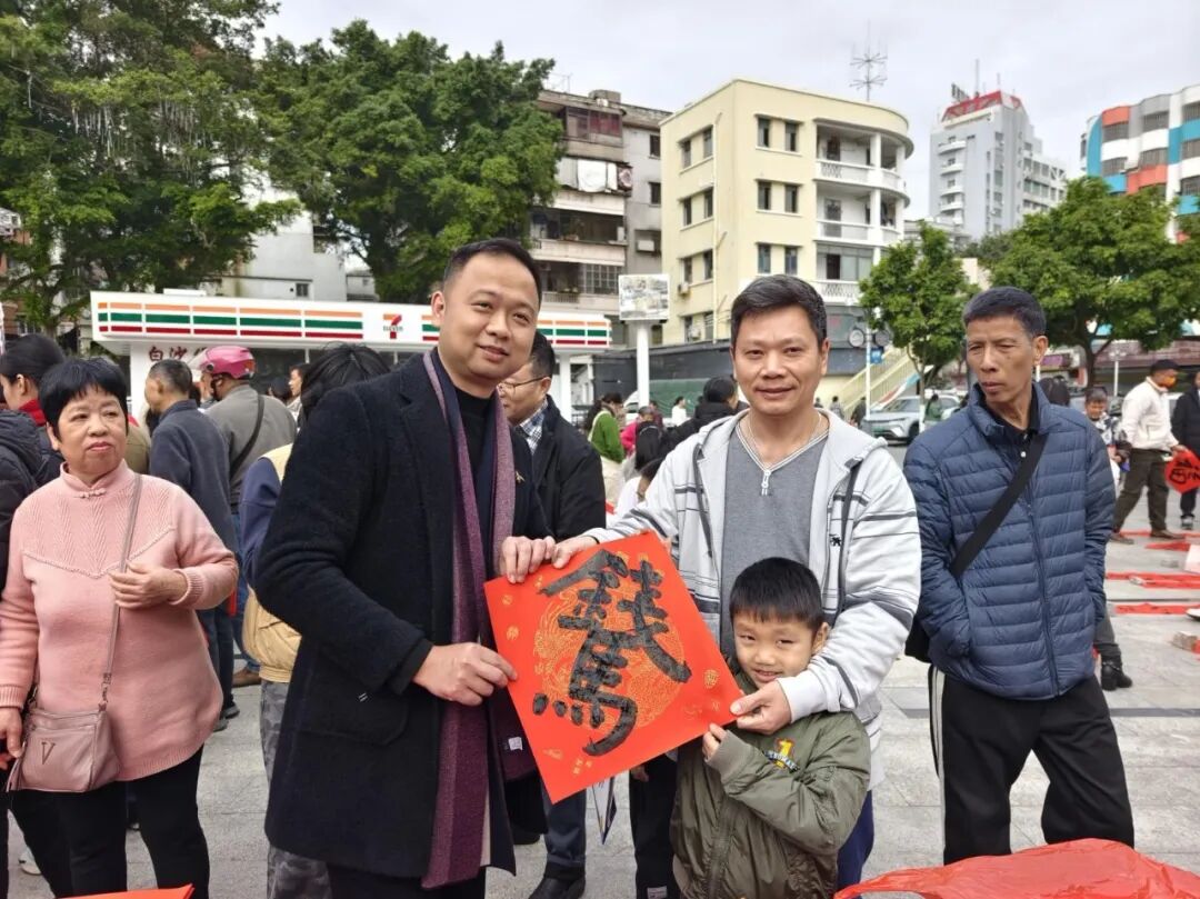 “写对联 送福字”活动现场更是墨香四溢。现场邀请了广东书法与文艺研究院的书法家,与江门书法家现场挥毫送春联,一幅幅寓意吉祥的春联、一个个遒劲有力的“福”字跃然纸上。市民们有序排队,挑选心仪的对联与福字,拿到手后满心欢喜,纷纷表示“手写的对联才有年味,还能把文明祝福带回家,太有意义了!”
