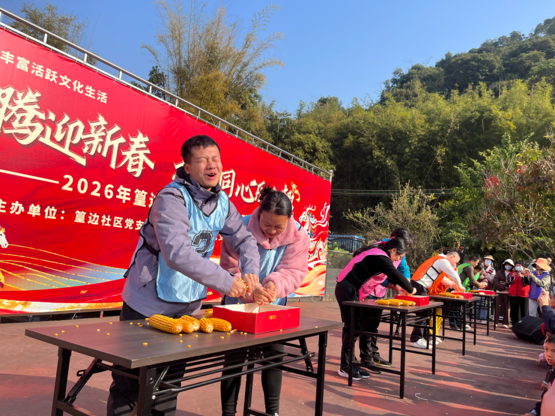 ↑篁边社区党支部、篁边社区新时代文明实践站联合社区共建单位开展“万马奔腾迎新春·社企同心乐农趣”之农趣运动会↑