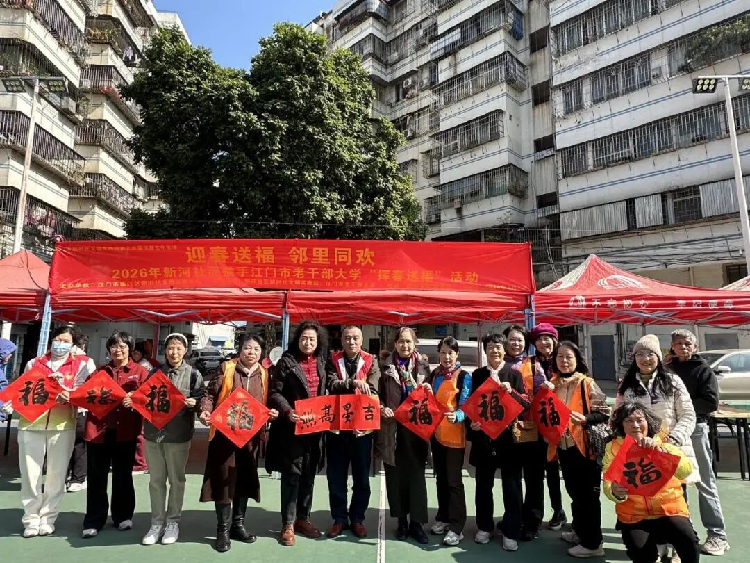 ↑新河社区新时代文明实践站携手江门市老干部大学迎春送福活动↑