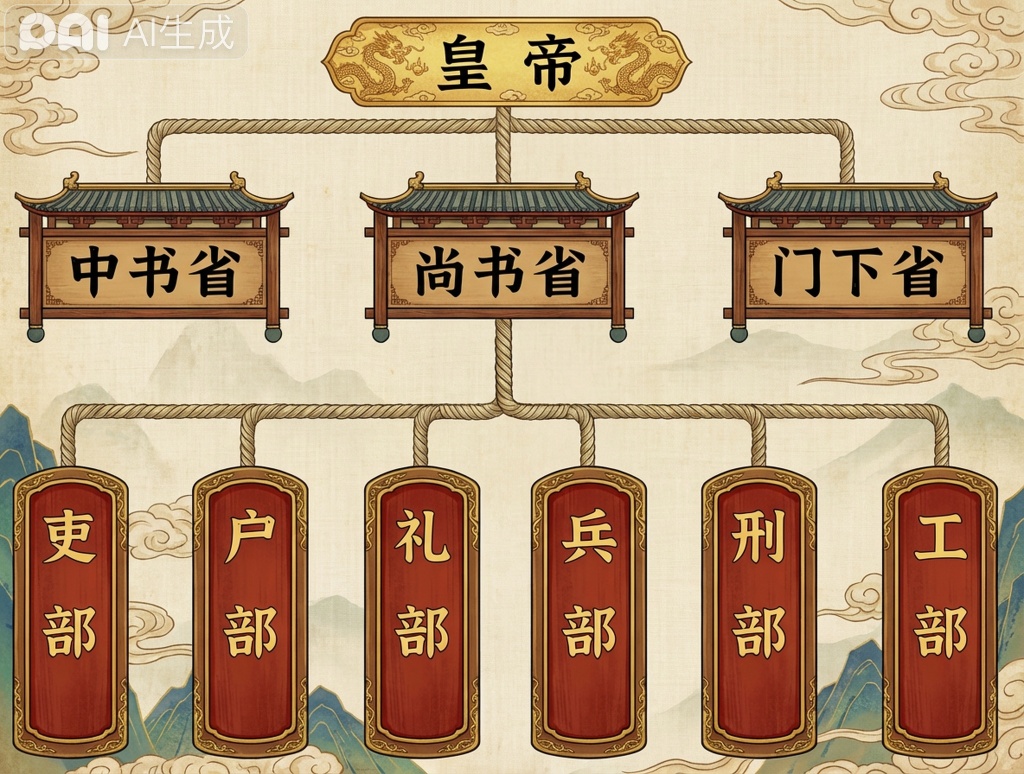唐朝前期的三省六部制示意图 派生万物生成