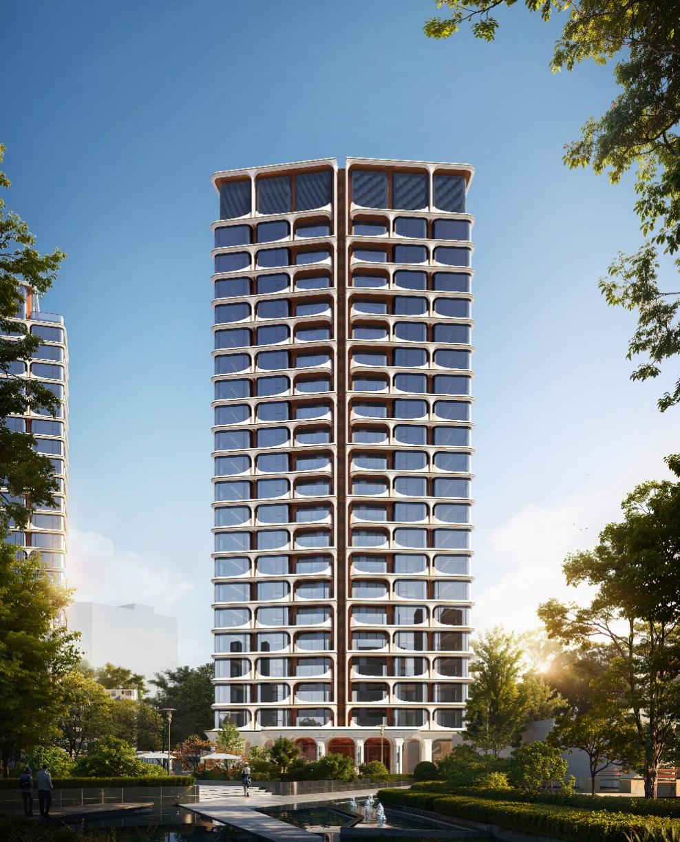 嘉佰道·上海,以高山流水的设计灵感,为了赋予徐汇一个世界级的地标,建筑立面的线条比例、材质肌理暗合上海衡复历史文化风貌区的建筑神韵,采用双曲面铝板与暖色陶板,并结合双曲面超白玻幕墙,让海派文化的优雅底蕴拥有了更国际化的表达。