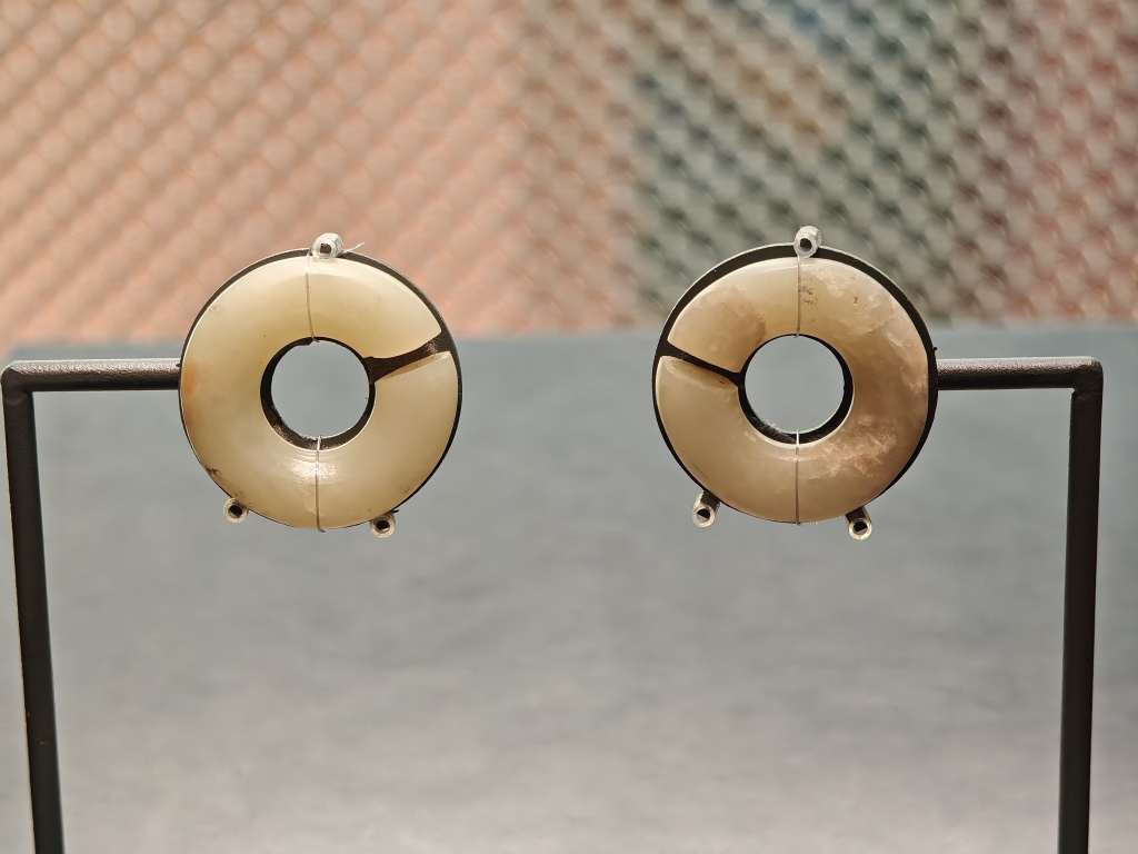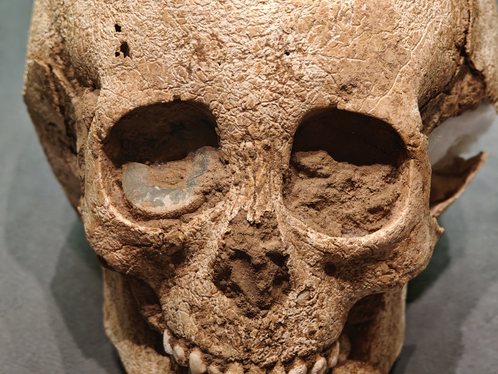 首次亮相的一件嵌玉玦人头骨就发现于兴隆沟遗址的居室墓内,墓主为未成年女性,头骨立置,肢骨凌乱,未见双足。一件玉玦嵌入墓主人右眼眶内,另一件发现于墓葬填土中,人头骨周围还散落有很多石管。据玦口处明显的磨损痕协来看,发掘者认为玉玦应为墓主人生前佩戴的耳饰,可能因右眼有疾,将其嵌入右眼眶内。