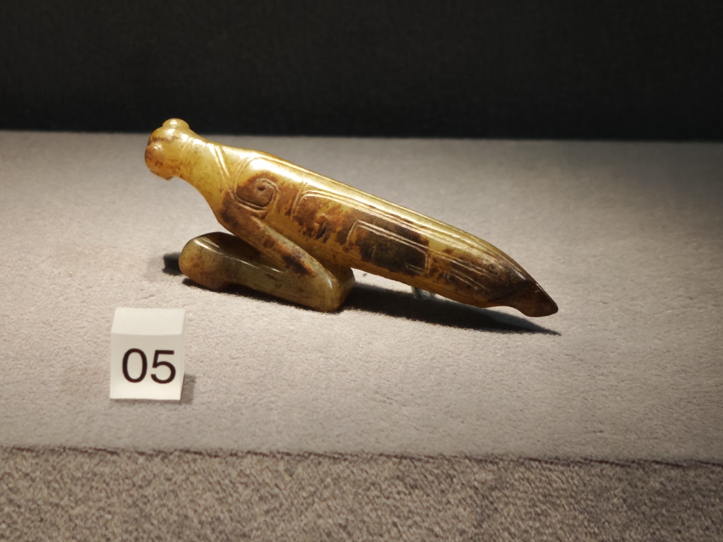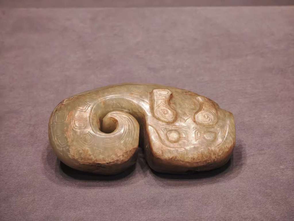 展览中许多文物为首次亮相,如来自兴隆沟遗址的嵌玉玦人头骨,展示“以玉示目”的特殊葬俗的同时,深层揭示了玉文化与原始信仰的早期关联;来自河南安阳殷墟妇好墓、山东滕州前掌大墓地、陕西长安张家坡西周墓地等出土玉器,或模拟动物形象栩栩如生,或作为礼乐文化的象征温柔敦厚。
