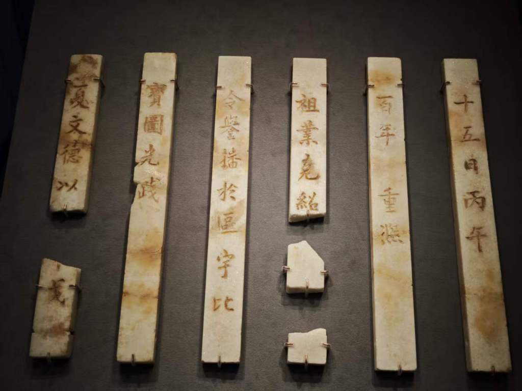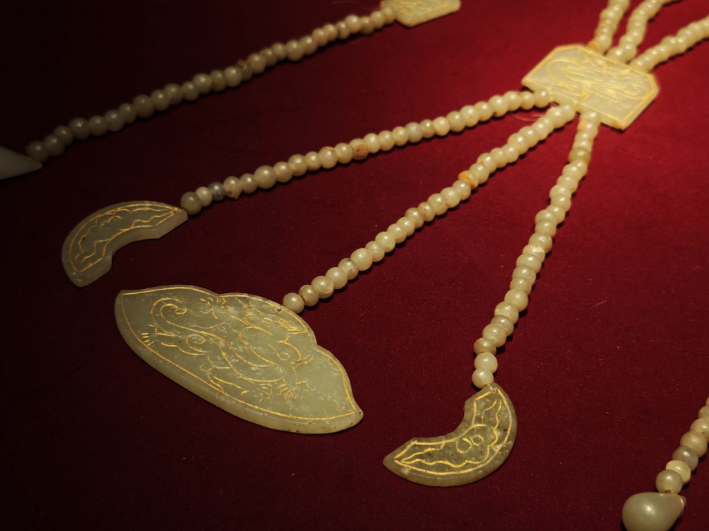 王莽封禅泰山玉牒、唐哀帝玉册,均具有鲜明的时代特色。北庭遗址出土的各类玉饰,选料考究、形制规范,是新疆地区玉文化发展的重要实物资料。明蜀王世子墓出土的组玉佩,保存完整,体现出玉器在冠服制度中的具体运用,也反映出明代社会对身份秩序的严格规范。