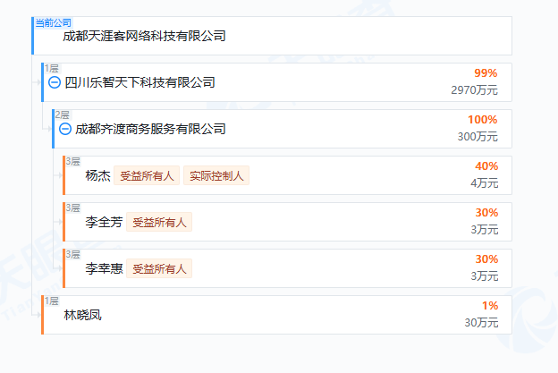 据天眼查,成都天涯客网络科技有限公司,成立于2024年,位于四川省成都市,是一家以从事科技推广和应用服务业为主的企业。企业注册资本3000万人民币,实控人杨杰。