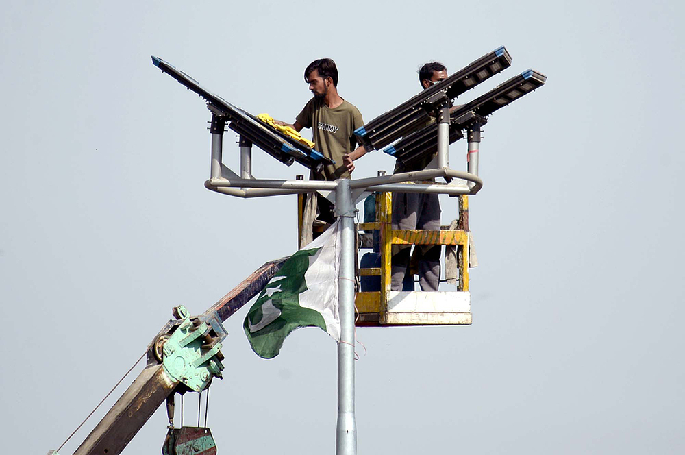 如果你在过去一年到巴基斯坦,或许会对一道特殊的风景线印象深刻——深蓝色的太阳能电池板在伊斯兰堡、拉合尔、卡拉奇等大城市的屋顶上闪闪发光,也点缀着全国各地乡村的房前屋后。