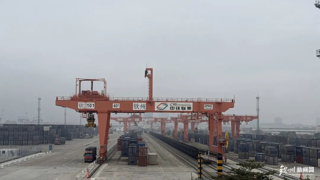 钦州铁路集装箱中心站是西部陆海新通道海铁联运的关键节点,巨大的堆场中,集装箱按智能系统规划整齐码放,从货物进场、堆存到装车出站,全流程实现数字化调度。中铁联合国际集装箱广西公司行政专员庞东焕说:“高效的物流运转使得钦州铁路集装箱中心站成为连接国内国际双循环的重要物流枢纽。2025年西部陆海新通道海铁联运班列开行10356列,钦州铁路集装箱中心站完成集装箱办理量85.6万标箱,同比增长15.9%。”