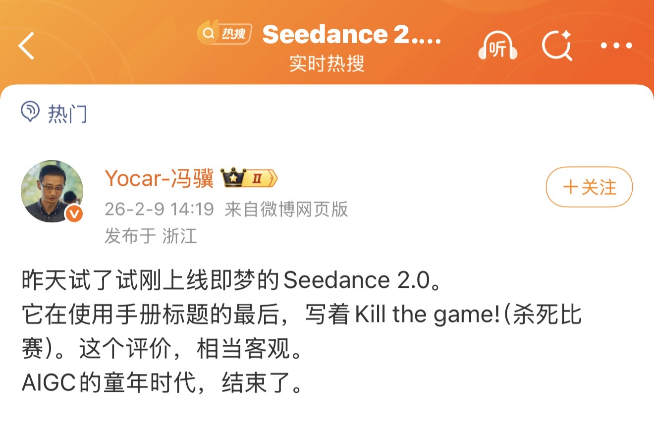 国内用户和市场反馈上,同样如此。Seedance 2.0,被不少AI玩家评价为视频大模型的「新王者」和「全能王」。内容创作领域的一款新模型,行业实际影响力如何?当下的顶流「自媒体」和业界大咖,有无参与讨论,乃至发表重要看法,是个关键评判指标。
