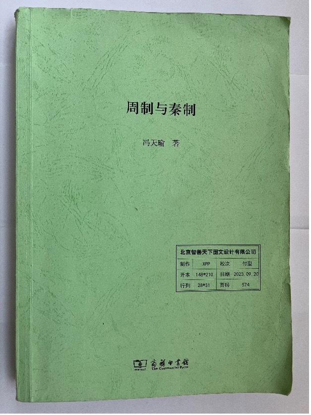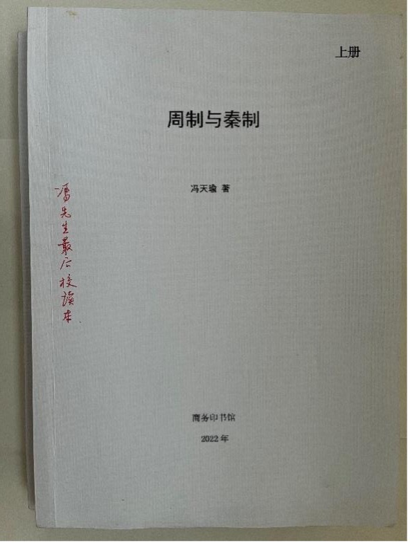 2022年3月7日,他致信秦晖说:“《周制与秦制》正定稿中,成篇后请斧政。”4月23日,他又致秦晖信,称“《周制与秦制》日前完稿,已交商务印书馆。此题研习,获君启迪。书出后当赠以求教。”冯先生在写作的同时,将已经完成的部分篇章先行发表,例如,《华中师范大学学报》于2022年第2期刊发了冯文《历代皆行汉政法》,这篇文章的主体内容便是《周制与秦制》的第二章。