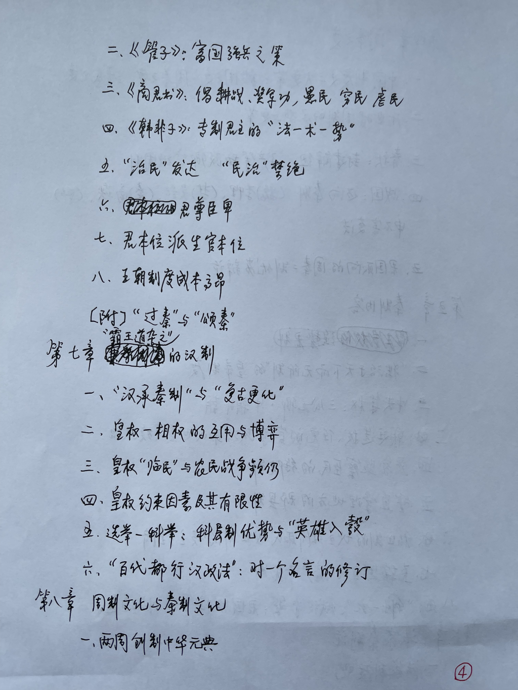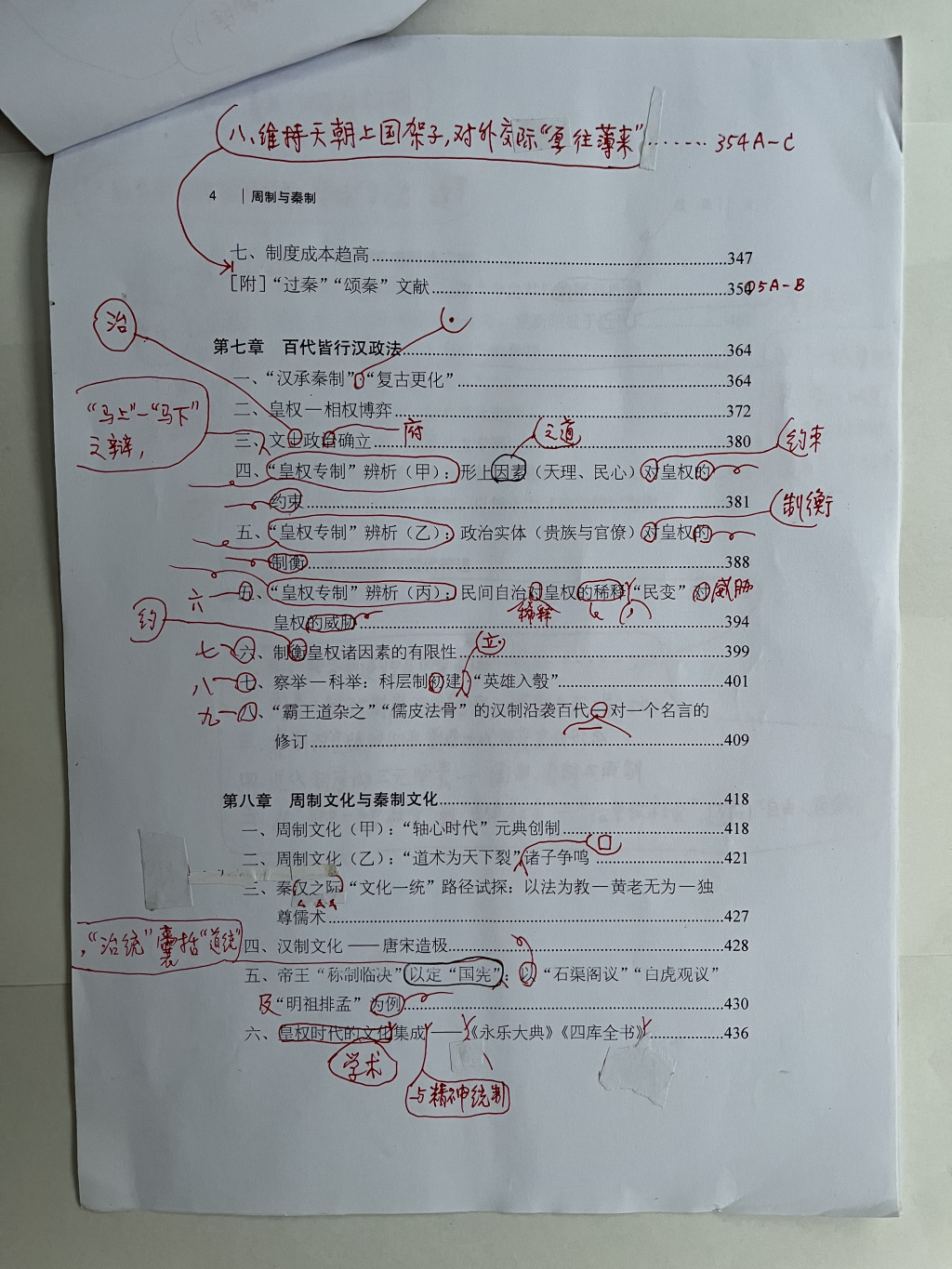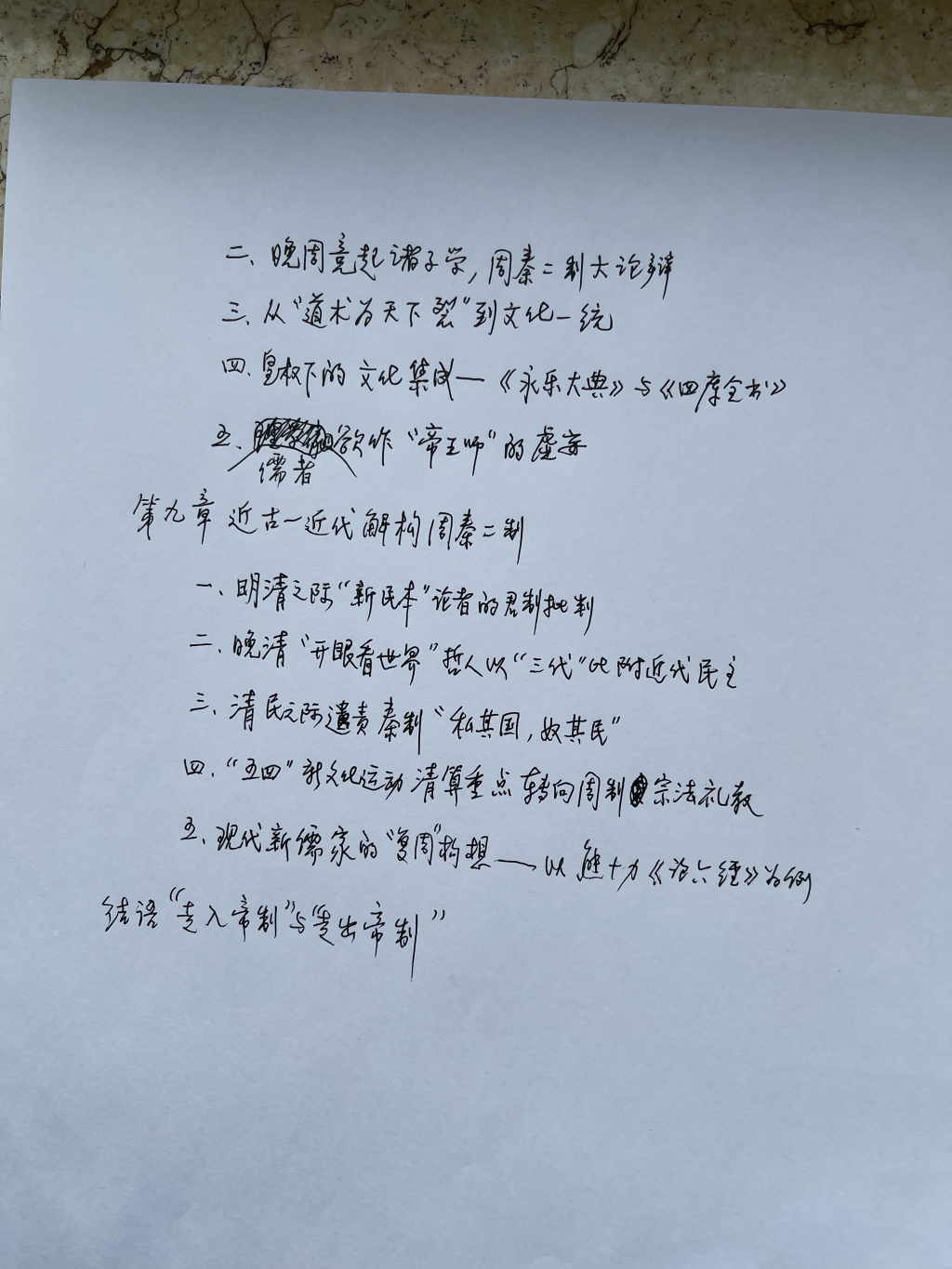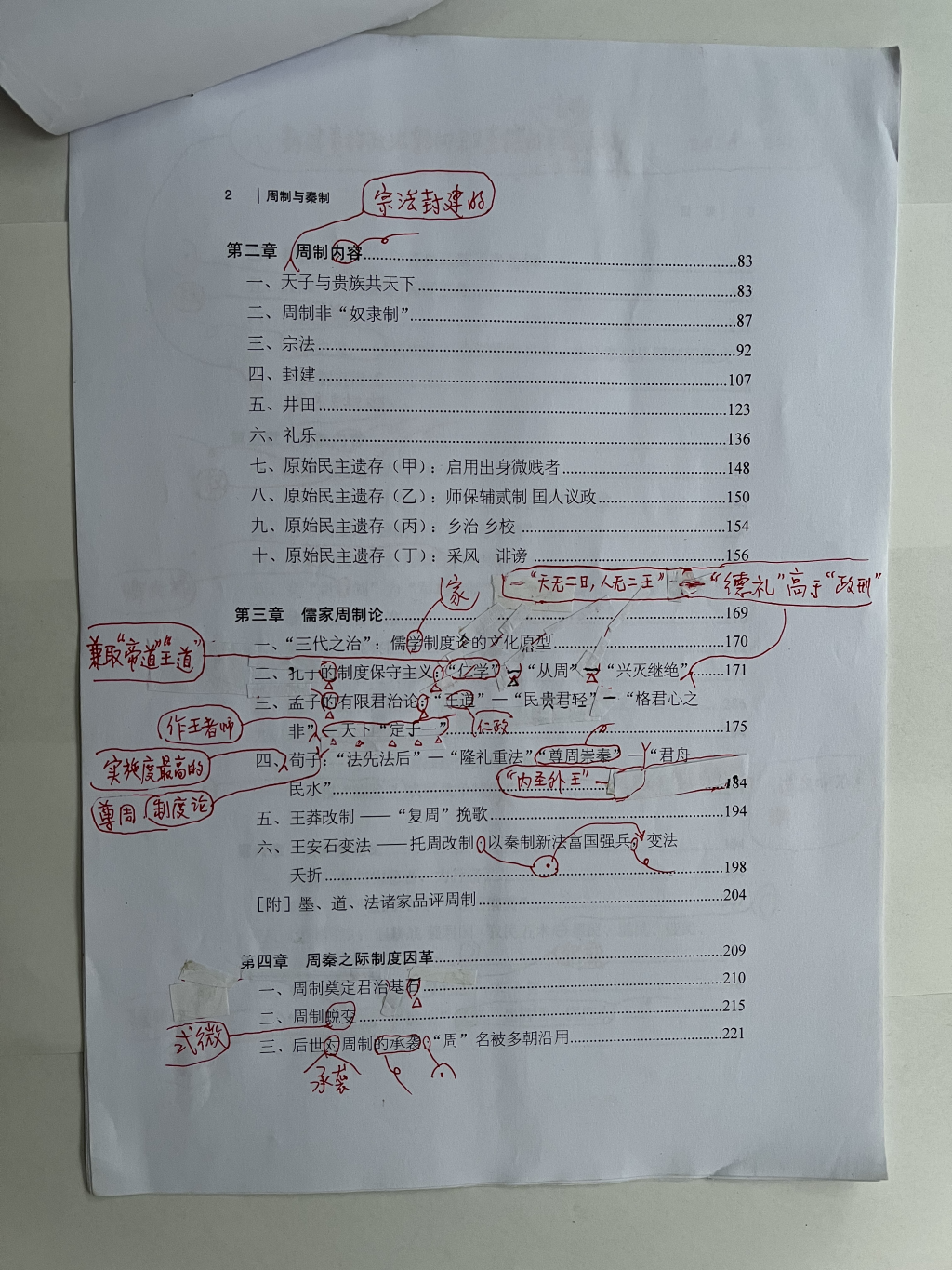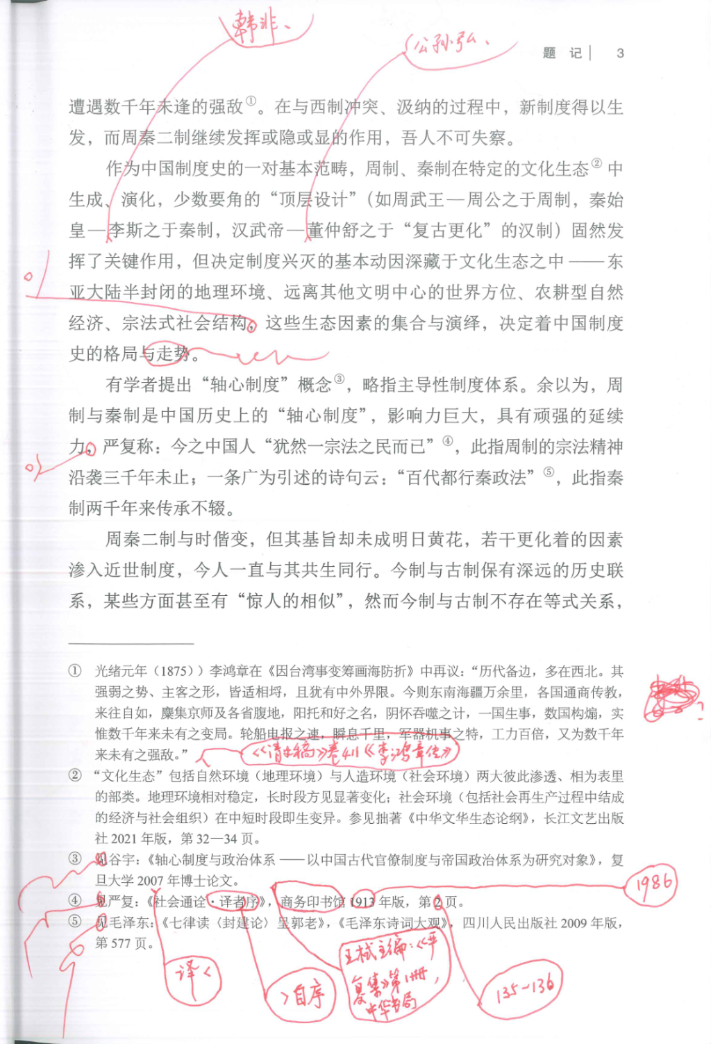 现在看来,《周制与秦制》的写作节奏基本如此。准备阶段可能很长,其写作时间若从与出版社签订合同之时(2021年7月)算起,到次年4月成稿,基本只花了不到八个月时间。其间再减去生病住院、应付别稿、冗务杂事,真正用以写作此书的时间,可谓极短。然后就是不断地修订,直至其去世,也是八个月时间,如果他还有能力,恐怕还会修改。
