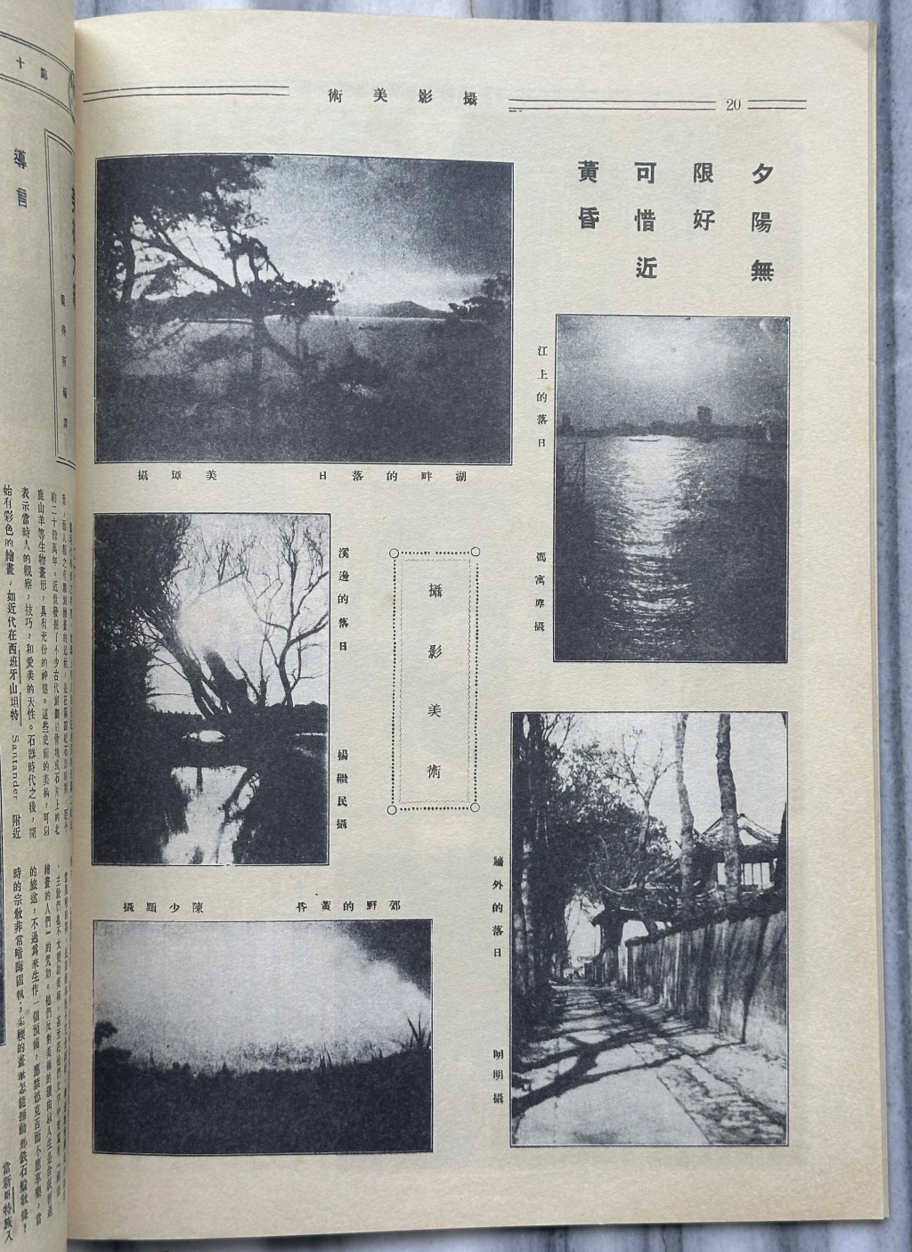 1927年3月30日第13期《良友》画报,以一整版以“摄影美术”为题刊发了一组(5幅)“夕阳无限好,可惜近黄昏”的风光摄影作品,首次提出“摄影美术”的概念。