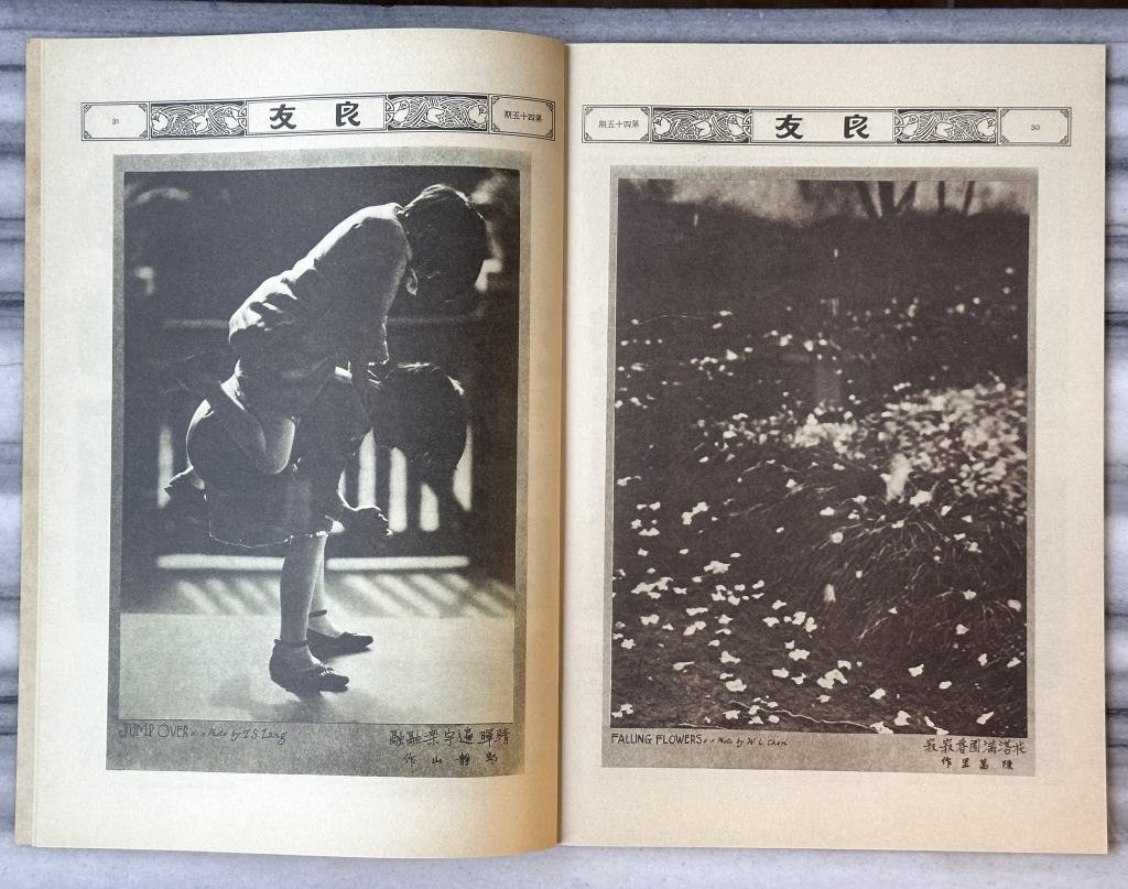 《良友》创刊至1945年抗战胜利结束,它与中国摄影的发展轨迹高度同步。这一时期,中国摄影由照相馆人像向户外风景、进而向独立艺术表达发展。1920年代中期,知识分子、文化阶层纷纷拿起相机进行独立的视觉表达,各地摄影团体纷纷建立。1927年,“摄影美术”概念被提出;1928年,“美术摄影”概念继之而出,强调摄影的创作性与艺术性。到1930年代中期,形成了20世纪中国摄影史上的第一个创作高峰。
