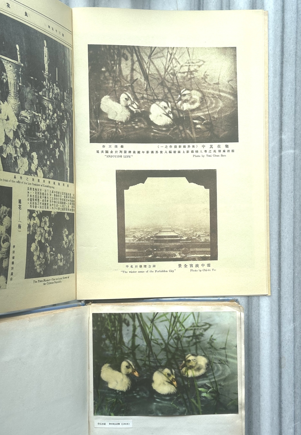 上图:第35期《良友》画报发表蔡俊三拍摄的《乐在其中》又名《春江水暖》,这幅作品是1920年代中国摄影经典名作。下图:蔡俊三亲自着色的原作,黄建鹏藏。