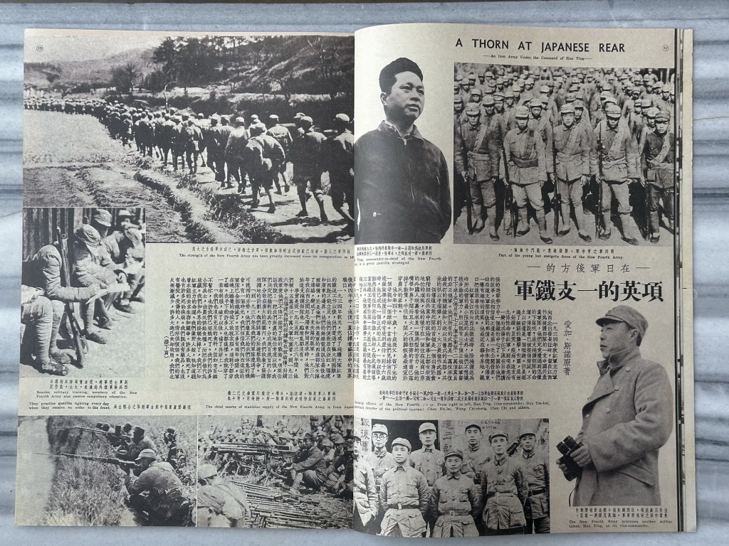1939年3月15日第140期刊发陈约克撰写的文章《去延安途中》,报道了大批爱国青年奔赴延安的故事。同年4月15日第141期整版刊发何汉章《军农合作》,照片中农民戴草帽扛爬犁、军人戴钢盔背步枪并排而立,仰角拍摄,天空与白云衬托轮廓,成为抗战宣传影像中影响深远的一幅。同年6月15日第143期刊发埃德加·斯诺《项英的一支铁军》,介绍新四军,刊发叶挺、项英肖像及新四军干部合影(包括周恩来、陈毅)。