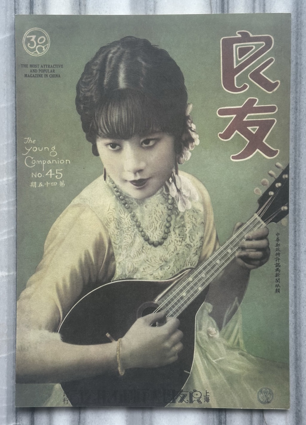 1930年3月第45期《良友》画报封面《关紫兰女士》,沪江照相馆摄。