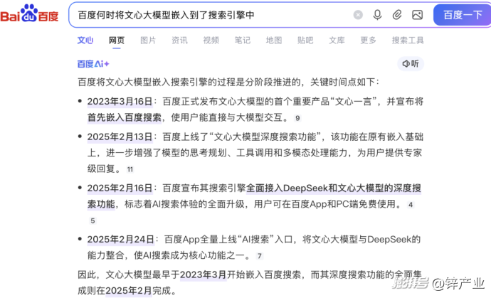 AI+搜索是大模型兴起后最先被波及到的赛道,而在谷歌、微软于2023年兴起AI搜索大战后,百度也将文心大模型嵌入到了搜索引擎中,百度这一全民搜索入口有了类似谷歌的AI搜索和总结功能。