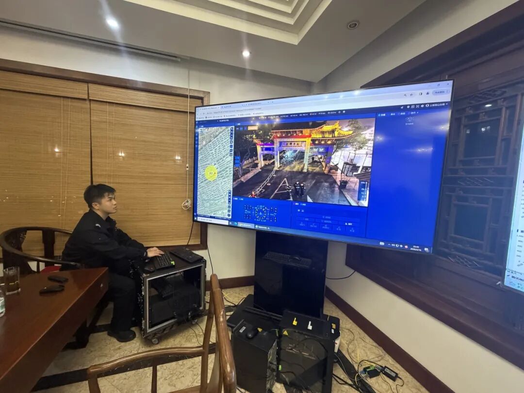 针对今年寺庙人流高度聚集、动态变化快的特点,顾村派出所将利用无人机巡飞进行动态监测,构建“人力+科技”“地面+空中”的全方位、立体化安保模式。综合指挥室内,大屏幕实时显示寺庙内外各区域的人数。与往年不同的是,今年指挥室的视野首次从地面延伸至空中——新投入的警用无人机在寺庙上空按预设航线进行自动巡飞,将高空俯瞰的实时画面同步回传,使得指挥人员能够更宏观、更迅速地掌握整体人流动向、重点区域密度以及周边交通状况,为精准调度警力、及时启动分级分流措施提供支撑。
