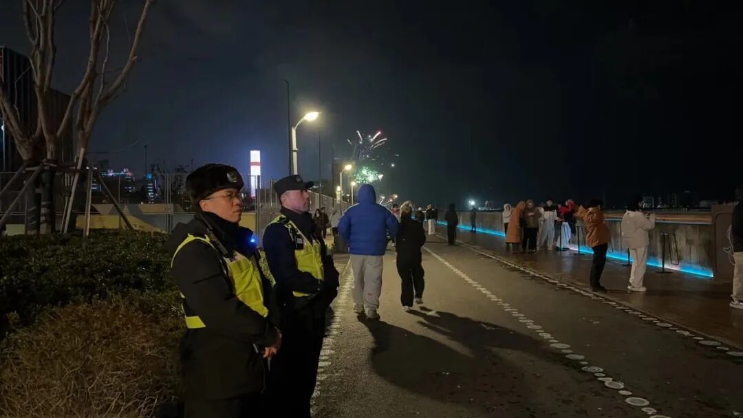 此外,警方会同消防、街镇等部门组建20余支应急小分队。这支队伍由负责现场秩序和人流管控的民警、处理火情的消防员以及经过专业培训的志愿者组成,实行定点值守、分片巡查、快速响应机制。民警维护现场燃放秩序,劝阻违规行为,消防员随时待命处置突发火情,志愿者协助开展隐患排查,引导市民前往亲水平台进行燃放,确保突发情况第一时间响应、高效处置,将风险化解在萌芽状态。