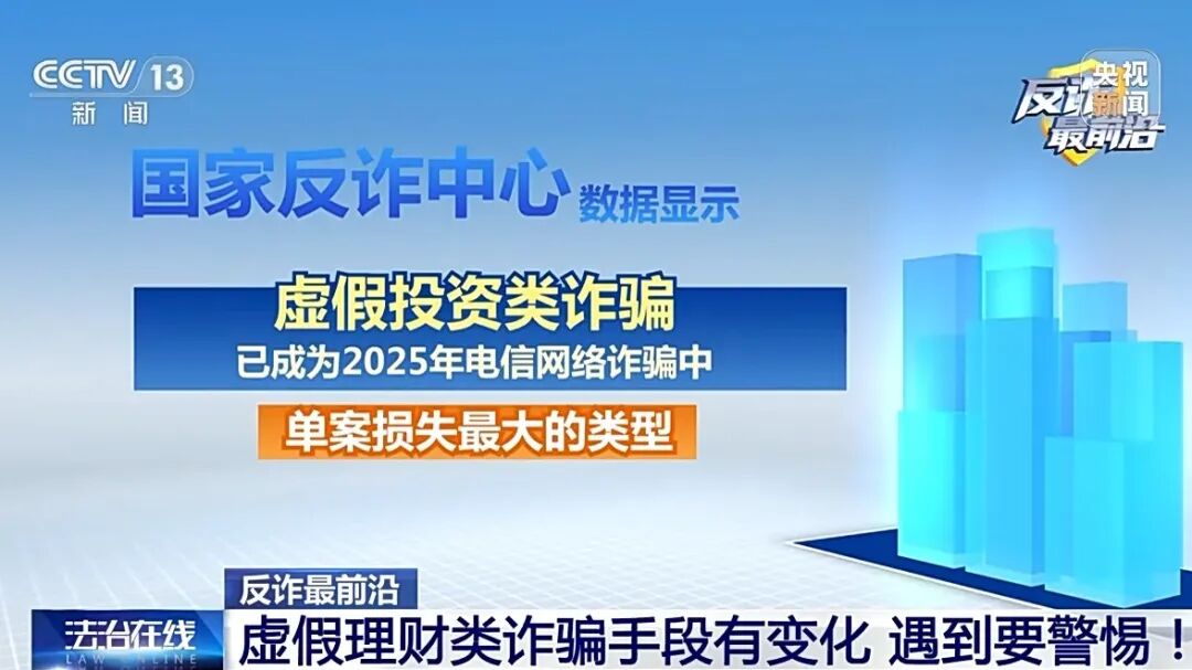 国家反诈中心提供的数据显示,虚假投资类诈骗已成为2025年电信网络诈骗中,单案损失最大的类型,50岁以上中老年群体案件占比高达40%,成为诈骗的重点目标。