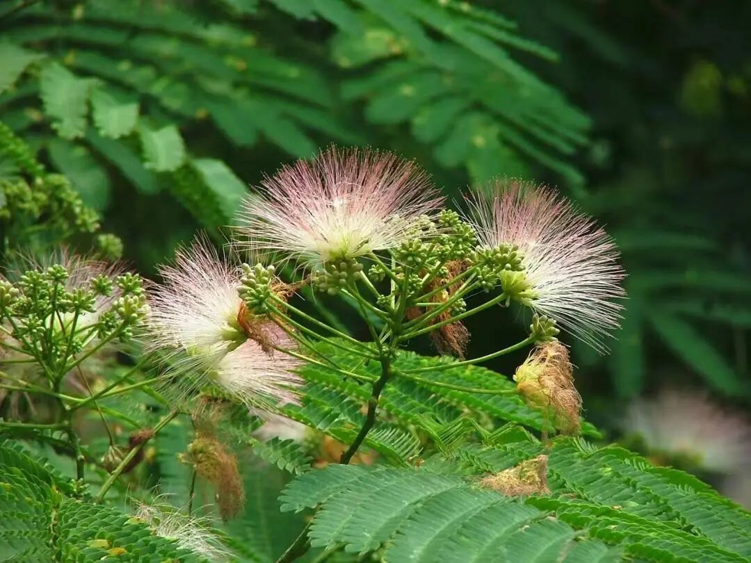 马缨花的美,藏在夏日的花期里。每年6-7月,它的枝头会缀满淡红色的头状花序,花瓣细碎柔软,攒成一个个毛茸茸的绒球,风一吹便轻轻摇曳,花香清甜淡雅,沁人心脾。它的叶片细小秀丽,呈二回羽状复叶,白天舒展,夜晚闭合,仿佛有着自己的“作息”,十分有趣。