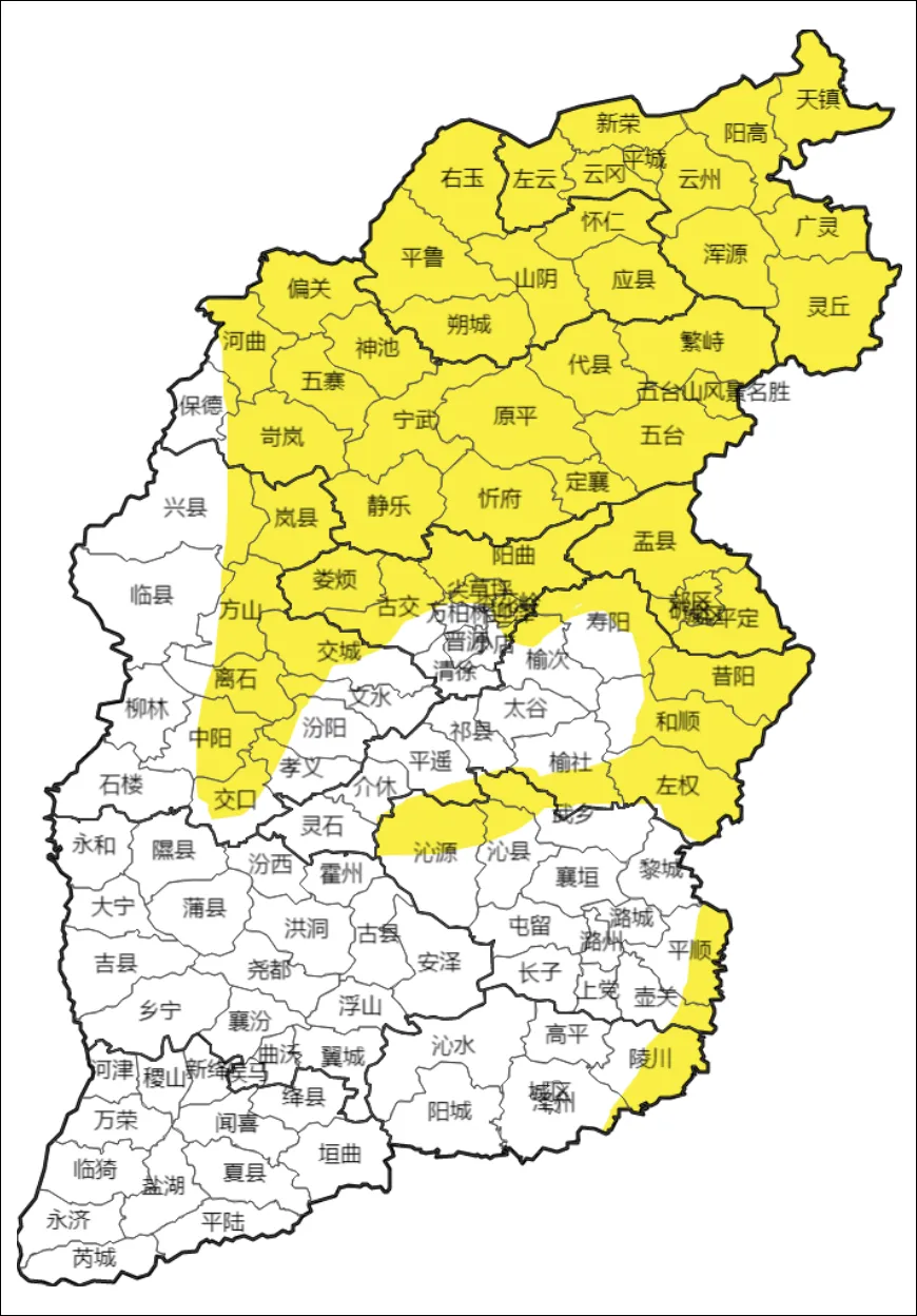 山西省气象台2026年02月21日08时41分升级发布大风黄色预警,预警区域:大同市、朔州市、忻州市、吕梁市、太原市、阳泉市、晋中市、长治市西北部和东部、晋城市东部。