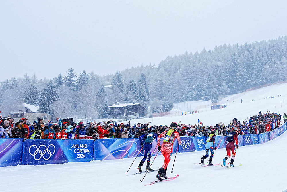 2026年2月19日,运动员在米兰-科尔蒂纳冬奥会滑雪登山比赛中。新华社记者 颜麟蕴 摄