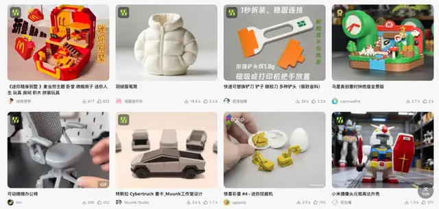 ▲Maker World上的部分模型展示
