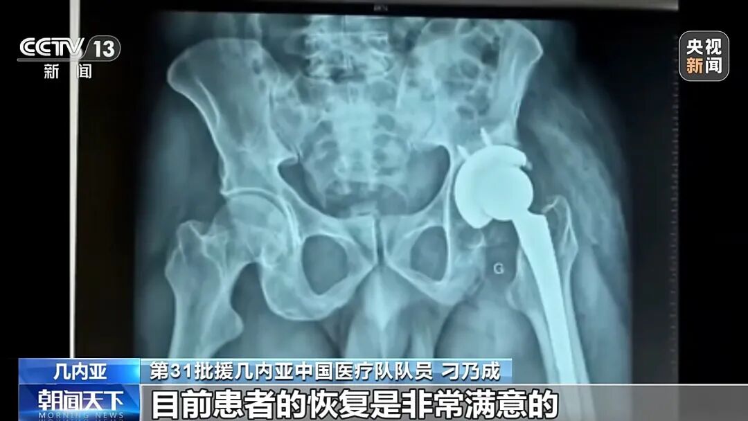 把受援国患者的生命健康放在首位,是每一位医疗队队员的使命,队员们不仅为这里带来了精湛的医术,还带来了前沿的医疗科技。去年5月,41岁的巴瑞·艾莱亚因左髋疼痛、行走受限就诊,医疗队队员们对患者的骨骼结构进行高精度三维重建,成功实施了人工全髋关节置换术。术后一周,巴瑞·艾莱亚就能顺利下地行走了。
