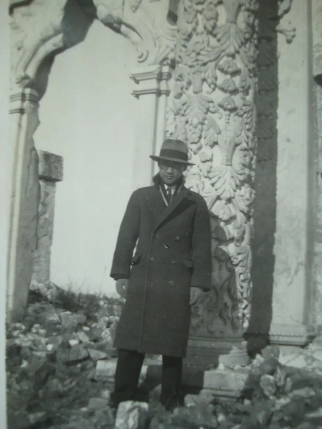 1933年冬,巴金摄于北平圆明园遗址