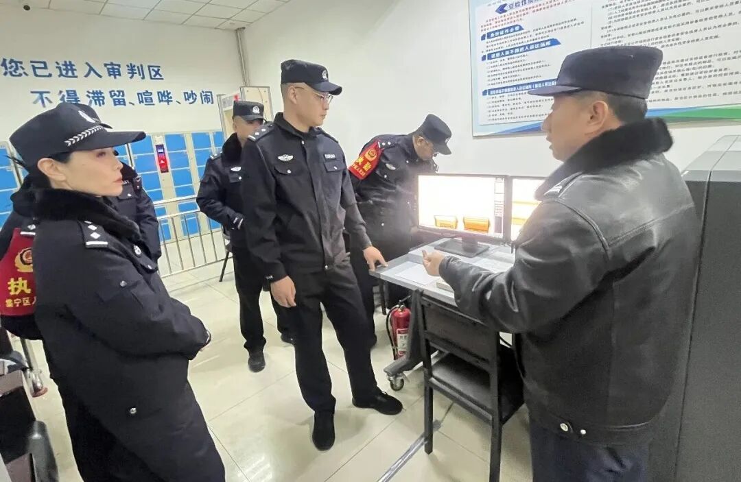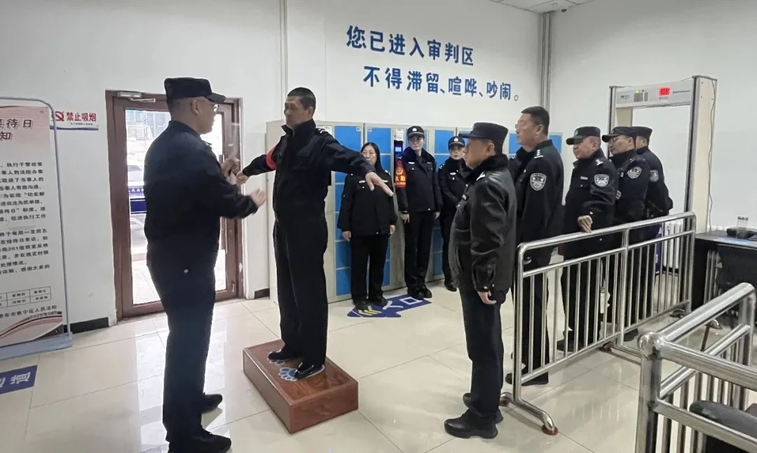 会上,全面总结了2025年度法警大队在庭审保障、安全保卫、队伍建设、技能训练等方面取得的工作及不足,客观分析了工作中存在的短板,并结合当前司法警务工作面临的新形势、新任务,对2026年度重点工作进行安排部署。特别是在机关安保方面,为了不影响正常的安检工作,会后组织警员和安保人员在安检场所进行实地培训,进一步强调要深化日常防控,坚持严格安检值守不放松。全体警员要以高度警惕,遵循“先过包、后安检、再存包”的原则,对每一位来院人员、每一件随身物品进行严谨细致的安全检查,坚决杜绝危险物品进入。同时,在两会前开展安全隐患大排查,对重点区域、关键环节进行拉网式梳理,及时消除潜在风险,筑牢法院内部安全稳定的铜墙铁壁。