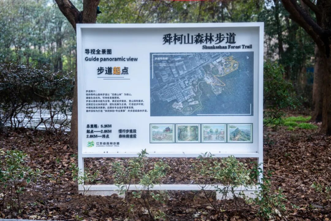 舜柯山是无锡重要的生态屏障,山体嶙峋多姿又不失秀美。森林步道位于舜柯山西北侧山泉广场到廉政广场区域内,沿山腰铺设,总长约5.3公里。