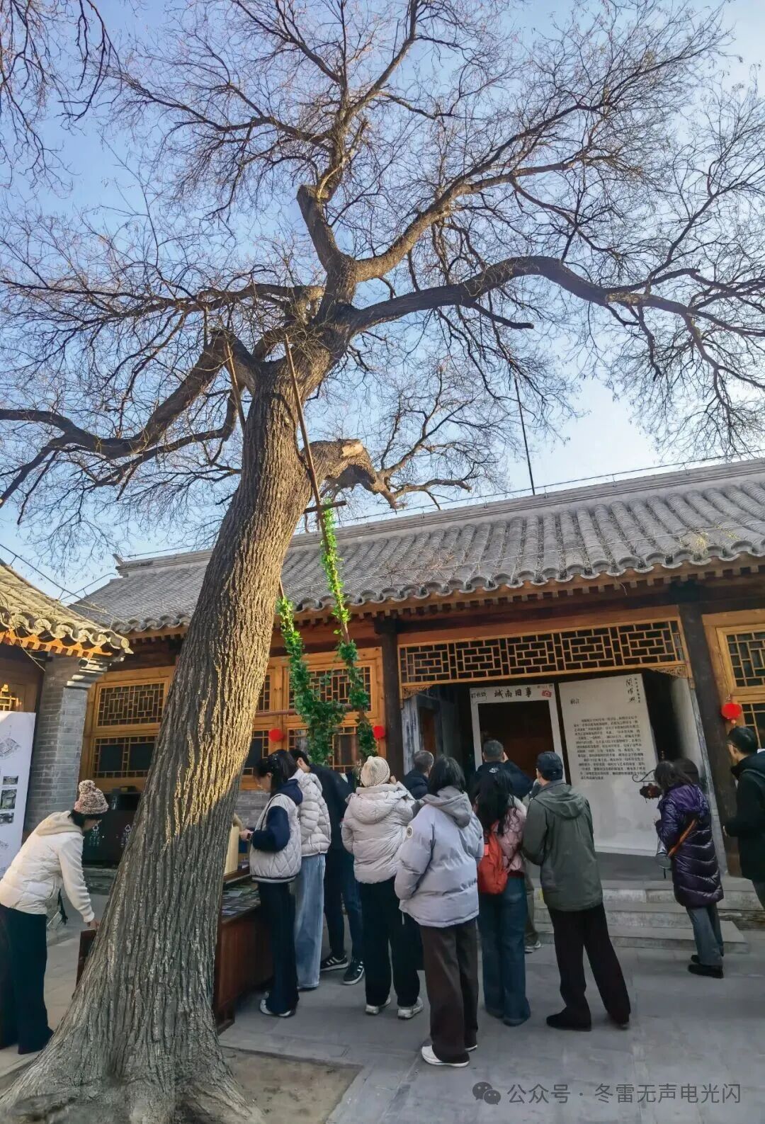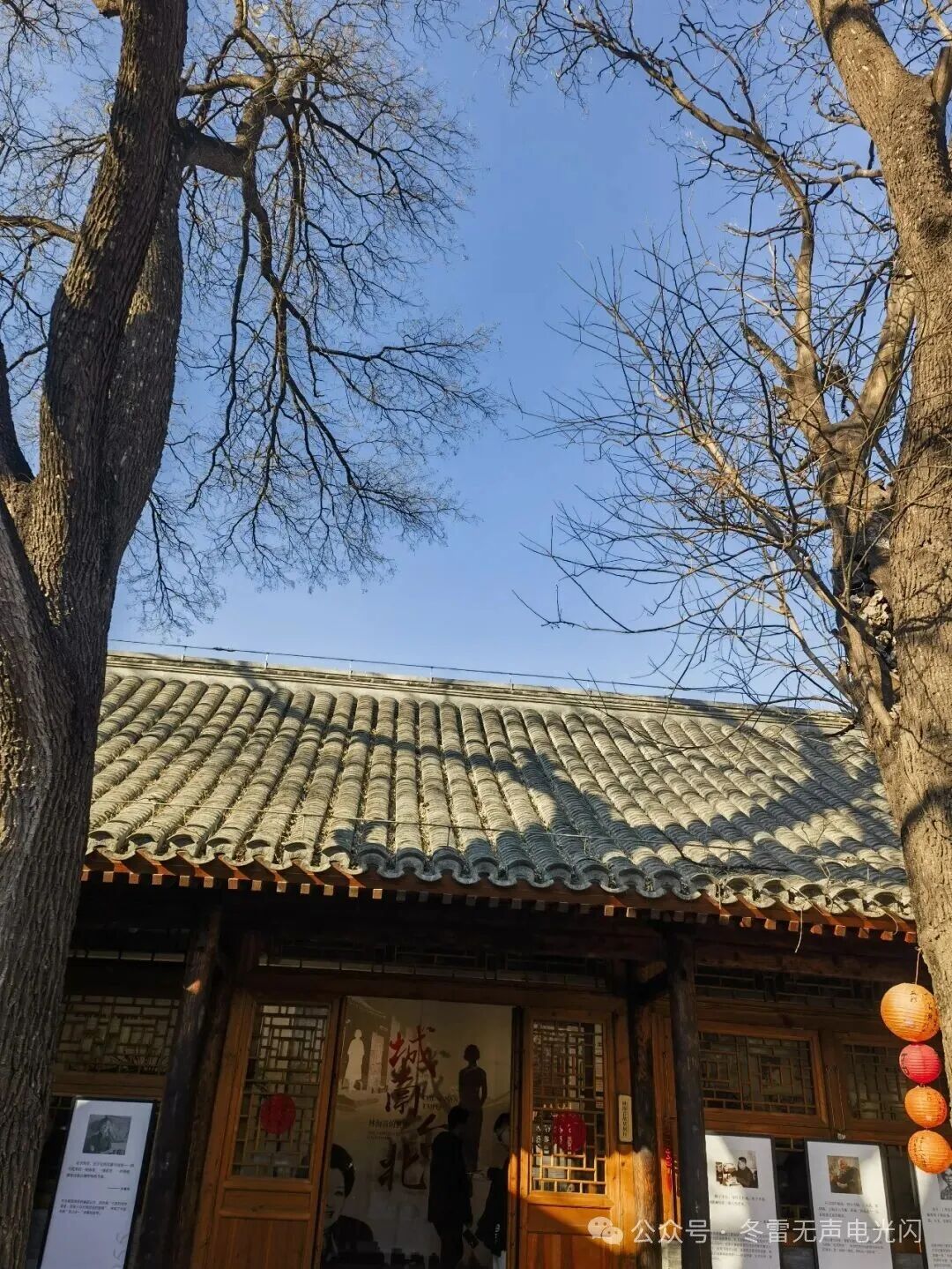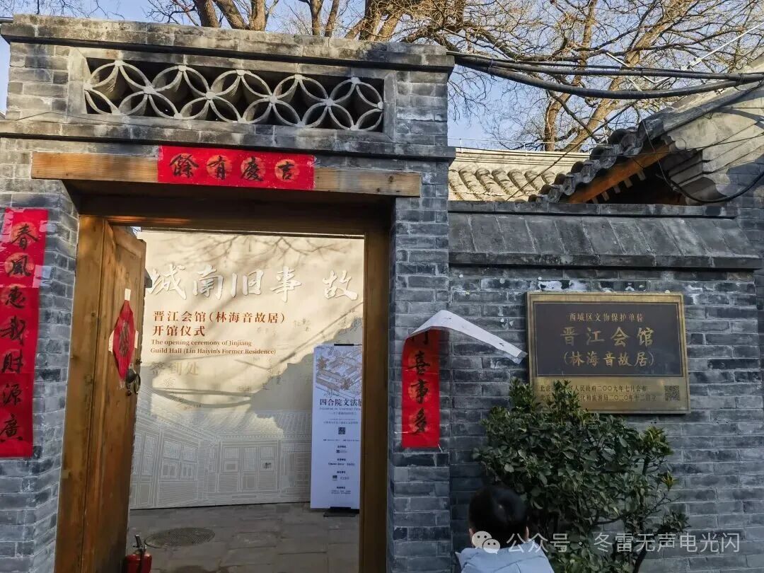 在冬日暖阳下,走进经过修缮保护的晋江会馆,首先映入眼帘的是小院中的3棵百年槐树。它们依旧高耸挺拔,甚至部分枝条已越过院墙,轻轻探入院外。它们仿佛仍在低语着《城南旧事》中宋妈口中的童谣:“老槐树,槐树槐,槐树底下搭戏台。人家的姑娘都来了,就差我的姑娘还没来。说着说着就来了:骑着驴,打着伞,光着屁股挽着髻,歪着脑袋上戏台。”