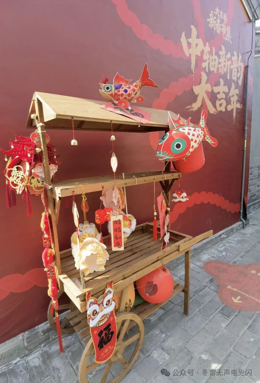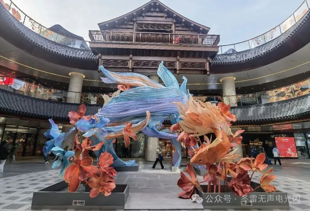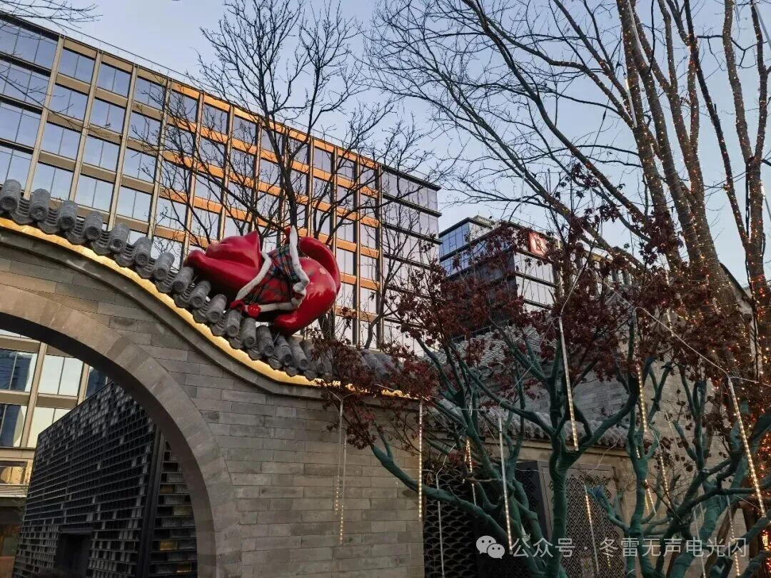 走入大吉巷,好像走进《大鱼海棠》的电影里。古代和现代建筑错落有致,街巷里到处挂满了灯笼和大红春联。一边是古色古香的四合院群落,文化气息浓郁;一边是时尚现代的商店,新潮新锐时髦。朱红灯笼长廊绵延铺展,青石板路载着岁月温润,糖画的甜糯与茶楼的清醇在风里交织……百年吉巷用最热闹的方式,轻轻推开了新春的大门,漫染出最地道的中国年味儿。夜幕降临,长廊里百盏宫灯连缀成“星桥”,仿佛把人们带进历史和现实交织的多彩世界。朱红流苏轻拂青石板,行人伸手便能触到流转的光影;“大吉之心”的锦鲤灯群在夜色中游弋,灵鲤跃过金门,琉璃映着新春的第一缕烟火。街上到处都是猫咪造型的小景观,随手一拍都很治愈。