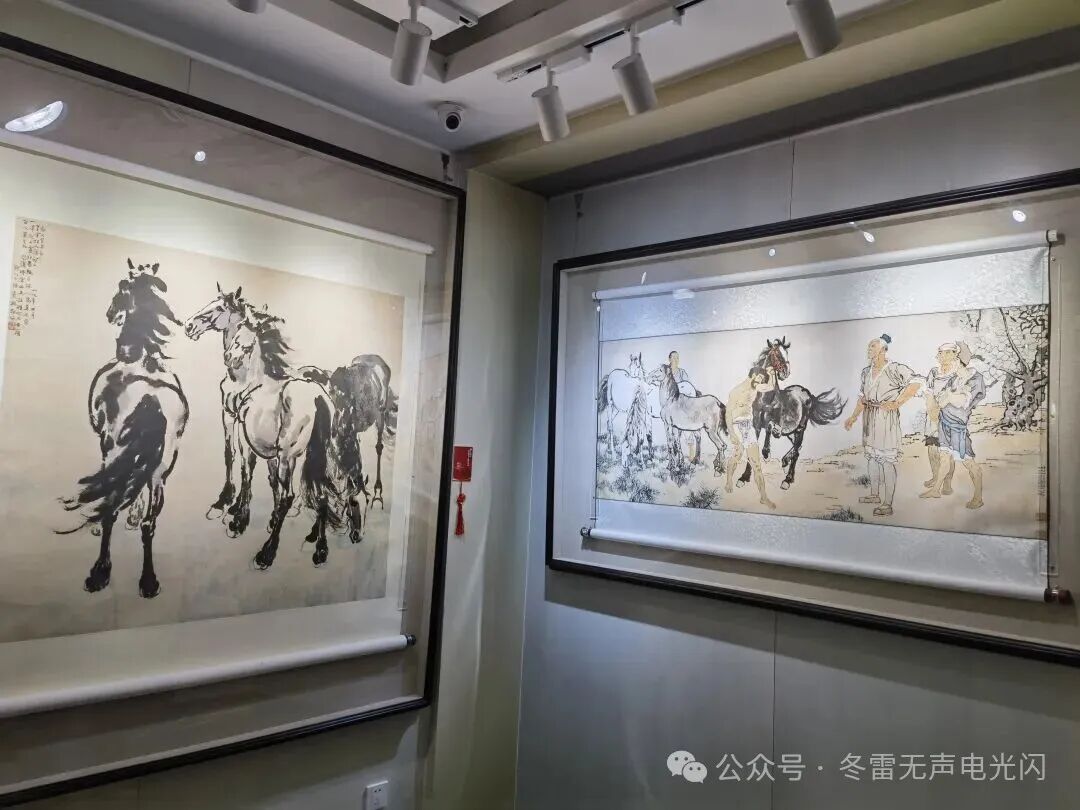 北京文物交流中心虹光阁,正举行“驰墨骋怀——徐悲鸿的马上乾坤”展。展览以“马”为核心,甄选徐悲鸿不同时期创作的30余幅骏马作品,画作尽显骏马神韵,更展现大师“直面人生、关切现实”的艺术追求与家国情怀。徐悲鸿曾言:“人不可有傲气,但不可无傲骨。”他笔下的马,正是这种民族傲骨的具象化。铁蹄卷起千堆雪,昂首嘶鸣震九霄。紫陌春风拂锦鞍,长嘶惊散晓霜寒。他的“马上乾坤”,是用墨色与线条写就的气吞山河的壮丽诗篇。