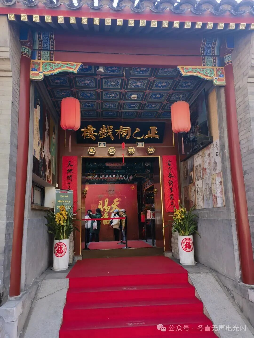 正乙祠,原为明代财神庙,供奉正乙玄坛老祖“正财神”赵公明。清康熙六年(1667年)在京的浙江商人,在“财神爷”的福佑之地,集资建立银号会馆,并将财神赵公明与商人们的祖先一起供奉。这财神庙也就取了正财神之名,得名正乙祠。康熙五十一年(1712年)扩建戏楼。现为北方昆曲剧院剧场。