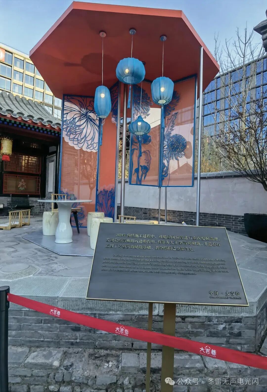 大吉巷,建于明代,崇祯年代称“打劫巷”,清末改称“大吉巷”。历史上这里是宣南文化的重要区域,有南海会馆、《每周评论》旧址、便宜坊旧址等多处重要历史遗存,许多梨园行和曲艺名家的居住地,是城市历史记忆与人文底蕴的鲜活载体。