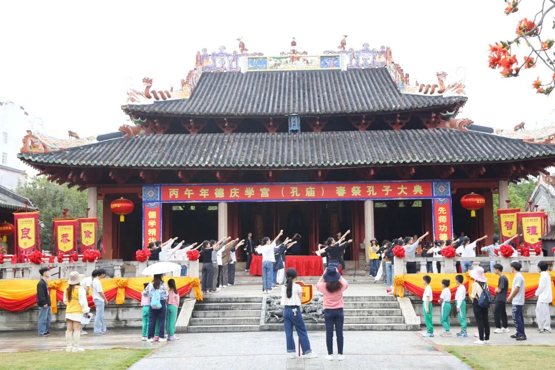 当天下午,德庆学宫春祭孔子大典彩排循古礼有序进行。典礼官、执事、舞生仪态端庄,从棂星门迎宾至大成殿祭祀,依次完成正衣冠、献花篮、行鞠躬礼、展演六佾舞等仪程,整个过程庄重严谨、古韵悠长。参演人员以虔诚之心还原传统祭祀礼仪,生动展现崇文尚德、尊师重教的优良传统。