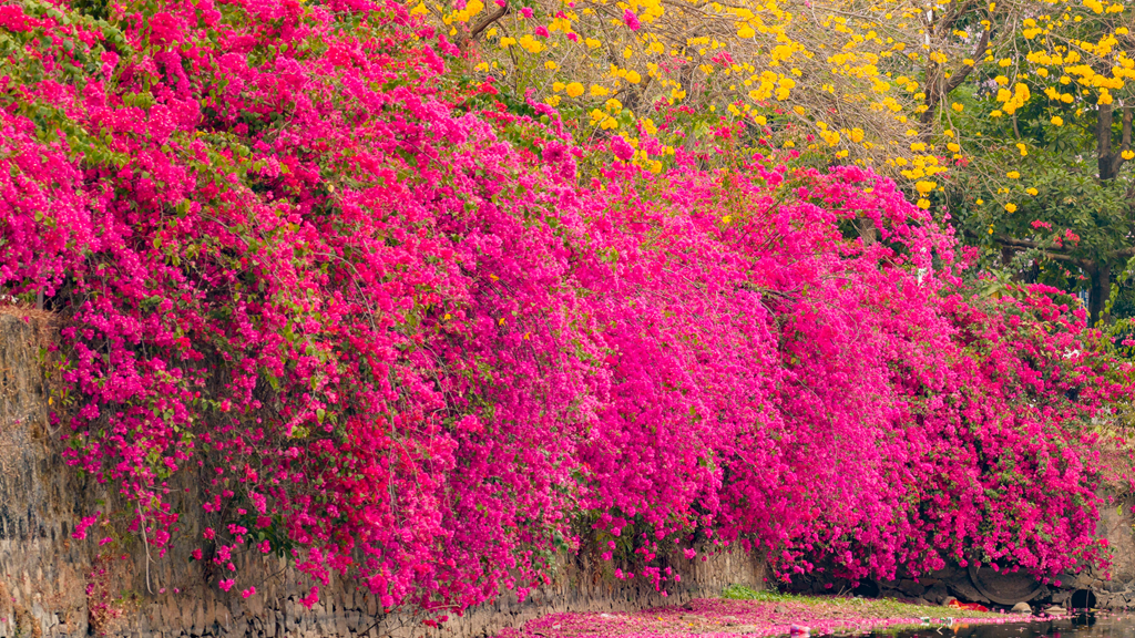 赏花品种:宫粉羊蹄甲、三角梅、黄花风铃木、樱花
